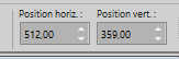Placer Position horiz.: 512,00 et Position vert.: 359,00.