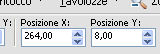 e imposta Posizione X: 264,00 e Posizione Y: 8,00.