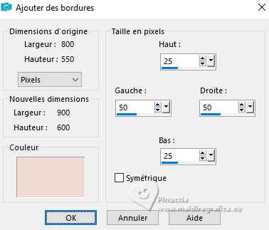 Image>Ajouter des bordures, 50 pixels, symétrique, couleur d'avant plan.