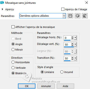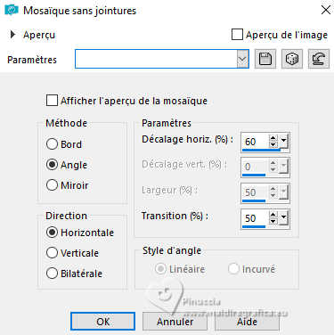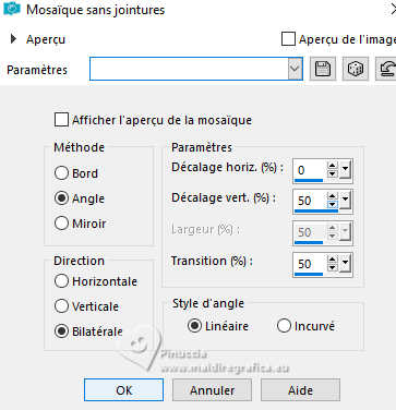 4. Effets>Effets d'image>Mosaïque sans jointures, par défaut.