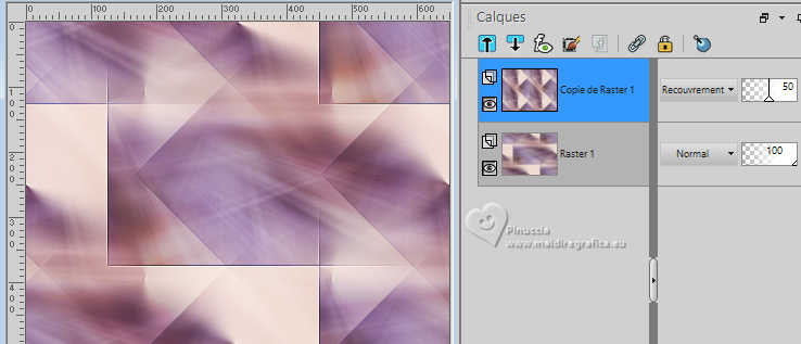 11. Placer le calque en mode Recouvrement et réduire l'opacité à 50%.