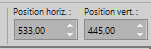Placer Position horiz.: 533,00 et Position vert.: 445,00.