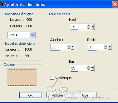 Image>Ajouter des bordures, symétrique décoché, couleur d'arrière plan.