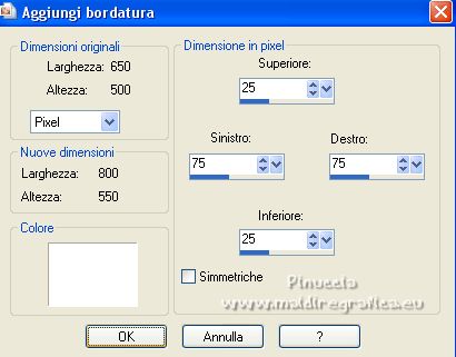 Immagine>Aggiungi bordatura, simmetriche non selezionato, colore di sfondo.