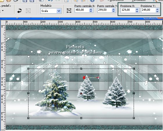 e imposta Posizione X: 129,00 e Posizione Y: 249,00.