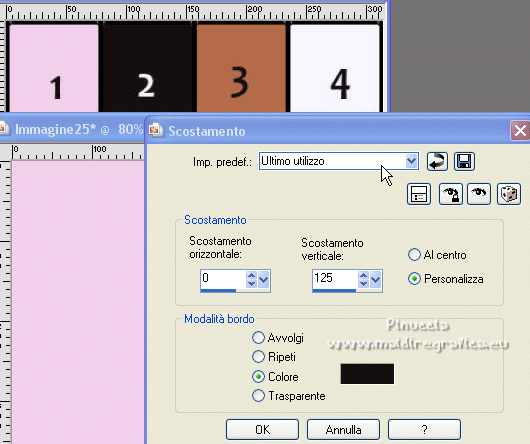 4. Effetti>Effetti di immagine>Scostamento, con i settaggi precedenti, ma con il colore 3.