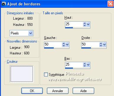 Image>Ajouter des bordures, symétrique décoché, couleur d'arrière plan.