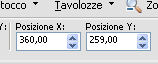 mantieni Posizione X: 360,00 e imposta Posizione Y: 259,00.
