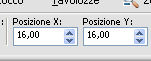 e imposta Posizione X: 16,00 e Posizione Y: 16,00
