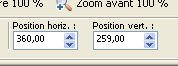 garder Position horiz.: 360,00 et placer Position vert.: 259,00.