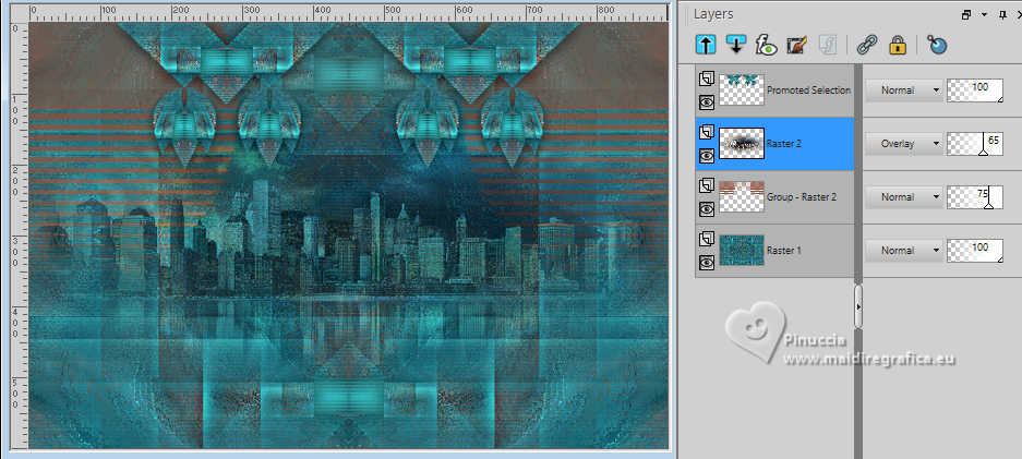 40. Change the Blend Mode of this layer to Overlay and reduce the opacity to 65%.