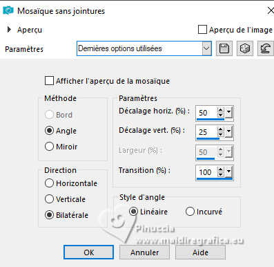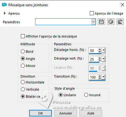 4. Effets>Effets d'image>Mosaïque sans jointures, par défaut.