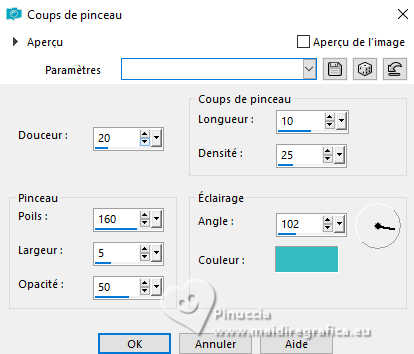 Effets>Effets Art Média ou Effets de traits>Coups de pinceau - couleur d'avant plan.