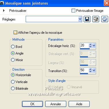 5. Effets>Effets d'image>Mosaïque sans jointures, par défaut.
