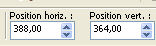 Placer Position horiz.: 388,00 et Position vert.: 364,00.