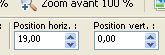 garder Position horiz.: 19,00 et placer Position vert.: 0,00.