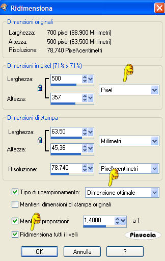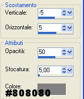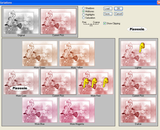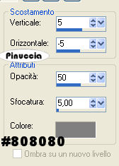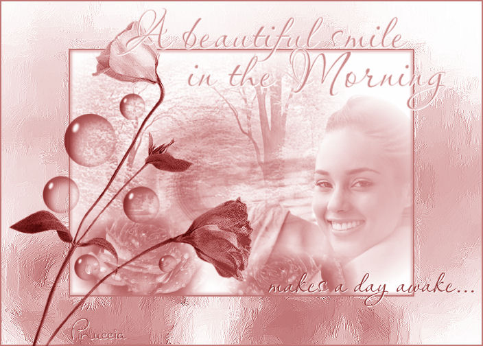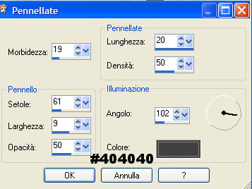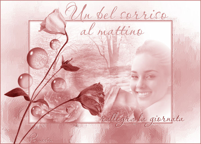 qui puoi trovare qualche risposta ai tuoi dubbi. Se l'argomento che ti interessa non è presente, ti prego di segnalarmelo. Occorrente: Materiale qui Tubes: una rosa (la mia è di Patry), un paesaggio (il mio è di Gini), Alicia-Keyes1 di Angel Ephiphany, il tube di NightAngel MatgorzataSwieezkowska_StemmedR, il tube di una bolla. NightAngel permette l'uso personale dei suoi tubes. Non potete usarli per i vostri tutorials. Non cambiate il nome dei tubes e non rimuovete il copyright. Lo stesso vale per i tubes di Angel Ephiphany. Filtri: Adjust Variation qui 1. Apri una nuova immagine BIANCA 700x500 pixels. Selezione>Seleziona tutto. Livelli>nuovo livello raster. 2. Apri il tube del paesaggio e vai a Modifica>Copia. Torna al tuo lavoro e vai a Modifica>Incolla>Incolla nella selezione. 3. Selezione>Nessuna selezione. Cambia la modalità di miscelatura di questo livello in Luminanza (esistente). 4. Livelli>Duplica. Attiva il livello inferiore. Effetti>Effetti di distorsione>Vento, intensità 100 da sinistra. ![]() Effetti>Effetti di distorsione>Vento, intensità 100 da destra. ![]() Effetti>Effetti di distorsione>Mulinello, 360 gradi. ![]() Attiva il livello superiore e abbassa l'opacità di questo livello al 50%. Spostalo in alto a sinistra.![]() 5. Apri il tube Alicia-keyes1 e vai a Modifica>Copia. Torna al tuo lavoro e vai a Modifica>Incolla>Incolla come nuovo livello. Spostalo nell'angolo in basso a destra.Cambia la modalità di miscelatura di questo livello in Luminanza (esistente) e abbassa l'opacità al 60%. Attiva lo strumento Gomma e cancella attentamente i segni del paesaggio dal viso della donna.(Ricorda che per fare questo devi posizionarti sul livello del paesaggio). ![]() 6. Apri il tube della rosa "MatgorzataSwieezkowska_StemmedR" e vai a Modifica>Copia. Torna al tuo lavoro e vai a Modifica>Incolla>Incolla come nuovo livello. Cambia la modalità di miscelatura di questo livello in Luminanza (esistente). Se necessario, ridimensiona il tube. Spostalo nell'angolo in basso a sinistra.Se necessario, dipende dal tube che hai scelto, abbassa l'opacità del livello. Livelli>Duplica. Immagine>Rifletti. Sposta la rosa sotto il viso di Alicia.![]() Livelli>Unisci>Unisci visibile. 7. Modifica>Copia. 8. Immagine>Ridimensiona, a 500 pixels di larghezza: ![]() Modifica>Copia. (devi avere in memoria l'immagine perchè ti servirà dopo. Un consiglio personale: duplica l'immagine (shift+d), non si sa mai. Per un motivo qualsiasi potresti perderla dalla memoria e, in questo caso, hai sempre la possibilità di ricopiarla. 9. Immagine>Aggiungi bordatura, 2 pixels, con il colore #808080. Immagine>Dimensione tela: ![]() 10. Clicca sul bordo con la bacchetta magica , sfumatura e tolleranza 0.Modifica>Incolla>Incolla nella selezione. (hai incollato nella selezione l'immagine che hai copiato al punto 7, prima della riduzione). Mantieni selezionato. 11. Regola>Sfumatura>Sfumatura gaussiana, raggio 10. ![]() Mantieni ancora selezionato. Effetti>Effetti artistici di disegno>Pennellate, con i seguenti settaggi, colore #404040. ![]() Mantieni ancora selezionato. Effetti>Effetti 3D>Sfalsa ombra, con i seguenti settaggi, colore #808080. ![]() Ripeti l'Effetto Sfalsa ombra, ma invertendo i valori verticale e orizzontale. ![]() 13. Selezione>Nessuna selezione. 14. Immagine>Aggiungi bordatura, 2 pixels, simmetriche, con il colore #808080. Ti apparirà questo messaggio: ![]() L'azione automatica appare quando l'operazione che stai effettuando doveva essere preceduta da un'altra operazione. In questo caso, prima di aggiungere una bordatura, l'immagine deve essere appiattita in un unico livello di sfondo, da fare con Livelli>Unisci>Unisci tutto appiattisci. Rispondi sì e PSP farà l'operazione per te, prima di continuare. 15. Apri il tube di NightAngel MatgorzataSwieczkowska_StemmedR von NightAngel e vai a Modifica>Copia. Torna al tuo lavoro e vai a Modifica>Incolla>Incolla come nuovo livello. Immagine>Rifletti. Cambia la modalità di miscelatura di questo livello in Luminanza (esistente). Spostalo sul lato sinistro dell'immagine.![]() 16. Apri il tube della bolla "Kugel" e vai a Modifica>Copia. Torna al tuo lavoro e vai a Modifica>Incolla>Incolla come nuovo livello. Livelli>Duplica. Immagine>Ridimensiona, del 70%, ricampionamento bicubico, tutti i livelli non selezionato. ![]() Ripeti questi passaggi e disponi le bolle intorno al fiore, come mostrato nell'esempio. ![]() 17. Livelli>Unisci>Unisci visibile. 18. Effetti>Plugins>Adjust - Variations: scegli i colori che preferisci, gioca con i settaggi. Io ho cliccato tre volte su More red e una su Lighter. ![]() 19. Imposta come colore di sfondo un colore scuro preso dall'immagine. Attiva lo strumento Testo ![]() Scegli un bel font, stile vettore, e scrivi il tuo testo. Livelli>Converti in livello raster. Effetti>Effetti 3D>Sfalsa ombra, con i seguenti settaggi, colore bianco. ![]() Non dimenticare di firmare il tuo lavoro. 20. Immagine>Ridimensiona, a 500 pixels di larghezza. 21. Salva in formato jpg. ![]() ![]() Se hai problemi o dubbi, o trovi un link non funzionante, o anche soltanto per un saluto, scrivimi. Novembre 2006 |