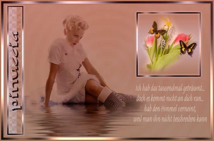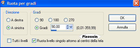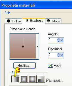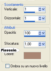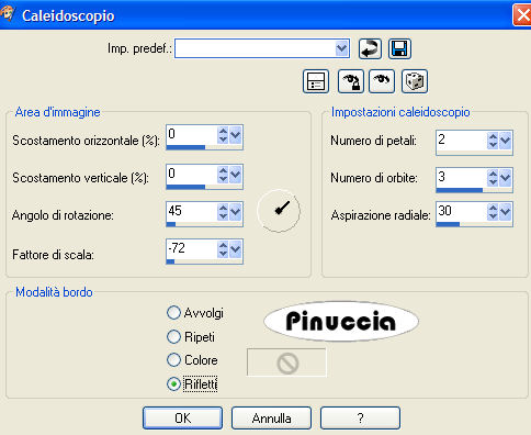 qui puoi trovare qualche risposta ai tuoi dubbi. Se l'argomento che ti interessa non è presente, ti prego di segnalarmelo. Occorrente: Materiale qui Metti il pennello nella cartella Pennelli di PSP. Apri il font e minimizzalo nella tua area di lavoro. Lo troverai nella lista dei font disponibili, quando ti servirà. Filtri: Graphics Plus qui Flaming Pear - Flood qui Filter Factory Gallery F qui Per poter usare i filtri Factory Gallery, bisogna prima convertirli. Come fare vedi qui 1. Apri una nuova immagine trasparente 700 x 450 pixels. Scegli due colori dal tube, uno chiaro come colore di primo piano e uno scuro come colore di sfondo. Passa il colore di primo piano a Gradiente di primo piano/sfondo: ![]() Riempi l'immagine trasparente con questo gradiente.2. Effetti>Effetti di riflesso>Caleidoscopio. ![]() Regola>Aggiungi/Rimuovi disturbo>Aggiungi disturbo: ![]() ![]() 3. Apri il tube annett_lousian_copyright_by_mathias_bothor1. Immagine>Ridimensiona, a 430 pixels di altezza. Modifica>Copia. Torna al tuo lavoro e vai a Modifica>Incolla>Incolla come nuovo livello. Sposta il tube sul lato sinistro.![]() 4. Livelli>Carica/Salva maschera>Carica maschera da disco. Cerca e carica la maschera 20/20: ![]() Livelli>Unisci>Unisci gruppo. Cambia la modalità di miscelatura di questo livello in Moltiplica. 5. Effetti>Plugins>Flaming Pear, Flood: ![]() ![]() 6. Cambia i settaggi del gradiente: ![]() Attiva lo strumento Selezione , rettangolo,e traccia un rettangolo sul lato destro. Livelli>Nuovo livello raster. Riempi con il gradiente.7. Scegli il tube di un bel fiore e vai a Modifica>Copia. Torna al tuo lavoro e vai a Modifica>Incolla>Incolla nella selezione. 8. Selezione>Modifica>Contrai, di 4 pixels. Selezione>Inverti. Selezione>Mobile. Selezione>Immobilizza. Livelli>Nuovo livello raster. Cambia l'angolo del gradiente a 120. ![]() Riempi il bordo della selezione con questo gradiente.Effetti>Plugins>Graphics Plus - Cross Shadow, con i settaggi standard. ![]() Ripeti l'Effetto Cross Shadow. Mantieni selezionato. 9. Effetti>Effetti 3D>Sfalsa ombra, con i seguenti settaggi, con il colore chiaro di primo piano: ![]() Ripeti l'Effetto Sfalsa ombra, cambiando verticale e orizzontale a -1. Selezione>Nessuna selezione. Livelli>Unisci>Unisci giù. Assicurati di essere posizionato sul livello superiore. 10. Posiziona correttamente la piccola immagine.Livelli>Unisci>Unisci visibile. ![]() 11. Attiva il tube di una delle due farfalle e vai a Modifica>Copia. Torna al tuo lavoro e vai a Modifica>Incolla>Incolla come nuovo livello. Spostalo sopra il tube del fiore.Effetti>Effetti 3D>Sfalsa ombra, con i seguenti settaggi, con il colore scuro di sfondo. ![]() Ripeti questo passaggio per la seconda farfalla. ![]() 12. Attiva lo strumento Selezione , rettangolo.Traccia una striscia, approssimativamente tra 430 e 440 pixels. . Visualizza il righello per facilitare il tuo lavoro. Non preoccuparti per la posizione, la sposterai più tardi. Livelli>Nuovo livello raster. Riempi la selezione con il primo gradiente.Effetti>Plugins>Filter Factory, Gallery F, Patchwork: ![]() Ripeti i punti 8 e 9. ![]() 13. Immagine>Ruota>Ruota per gradi, 90 gradi a sinistra. ![]() Sposta la striscia contro il bordo sinistro.Se vuoi regolare la striscia in lunghezza, puoi usare lo strumento Deformazione ![]() 14. Imposta il colore di sfondo con l'ultimo gradiente e chiudi il colore di primo piano. Attiva lo strumento Testo , e scegli un bel font, crea come vettore.Scrivi il tuo nome. Immagine>Ruota>Ruota per gradi: ![]() Sposta il testo nella striscia.Se necessario, usa i nodi vettori per allargare o allungare il testo. Livelli>Converti in livello raster. Effetti>effetti 3D>Sfalsa ombra: ">Ripeti 3-4 volte. 15. Livelli>Unisci>Unisci visibile. ![]() 16. Livelli>Nuovo livello raster. Passa il colore di primo piano al colore bianco. Attiva lo strumento Pennello ![]() cerca e seleziona il pennello Boheme1, dimensione 255, e applicalo, cliccando due volte, sotto l'immagine del fiore. Effetti>Effetti 3D>Sfalsa ombra, con i seguenti settaggi, colore scuro di sfondo. ![]() 17. Immagine>Aggiungi bordatura, 4 pixels, simmetriche, con il colore scuro di sfondo. Immagine>Aggiungi bordatura, 8 pixels, simmetriche, con il colore bianco. Seleziona il bordo bianco con la bacchetta magica ![]() e riempilo con il primo gradiente.Effetti>Plugins>Graphics Plus - Cross Shadow, con i settaggi standard. Ripeti l'Effetto Cross Shadow. Effetti>Effetti 3D>Sfalsa ombra, con i settaggi usati per il pennello. ma con il colore chiaro di primo piano. Ripeti l'Effetto Sfalsa ombra, ma cambiando verticale e orizzontale a -1. Selezione>Nessuna selezione. 18. Immagine>Aggiungi bordatura, 4 pixels, simmetriche, con il colore scuro di sfondo. 19. Effetti>Plugins>Fotomatic - Skygrad: ![]() 20. Immagine>Ridimensiona, a 600 pixels di larghezza. Non dimenticare il tuo watermark. Salva in formato jpg. ![]() Se hai problemi o dubbi, o trovi un link non funzionante, o anche soltanto per un saluto, scrivimi. 27 Aprile 2007 |