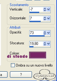 qui puoi trovare qualche risposta ai tuoi dubbi. Se l'argomento che ti interessa non è presente, ti prego di segnalarmelo. Occorrente: Materiale qui Tubes: SS_488 di Suzi e caro3066. Maschera: SKF_Mask42. Pennello: text3_bp003 (da importare in PSP). Filtri: Penta.com qui FM Tile Tools /Blend Emboss qui Xero qui Adjust qui Animazione: Big_Glitter_Heart_Double.mng. Caro permette l'utilizzo dei suoi tubes soltanto per uso personale. Non potete usarli per i vostri tutorial. Non cambiate il nome al tube e non rimuovete il copyright. 1. Apri una nuova immagine trasparente 700 x 500 pixels. Imposta il colore di primo piano con #f7ddc4, e il colore di sfondo con #6d6056. 2. Riempi l'immagine con il colore chiaro di primo piano.Livelli>nuovo livello raster. Riempi il nuovo livello con il colore di sfondo.3. Livelli>Carica/Salva maschera>Carica maschera da disco. Cerca e carica la maschera SKF_Mask42. ![]() Nella paletta dei livelli clicca con il tasto destro del mouse sul livello Maschera, e scegli Unisci>Unisci gruppo. 4. Livelli>Unisci>Unisci visibile. Effetti>Plugins>FM Tile Tools, Blend Emboss, con i settaggi standard: ![]() 5. Apri il Tube SS_488 di Suzi e vai a Modifica>copia. Torna al tuo lavoro e vai a Modifica>Incolla come nuovo livello. Spostalo sul lato sinistro.Attiva lo strumento Puntatore ![]() (se stai usando PSP X è lo strumento Deformazione )e spingi il tube in modo che esca dai bordi. ![]() 6. Nella paletta dei livelli cambia la modalità di miscelatura in Luminanza (esistente) e abbassa l'opacità al 60%. 7. Apri il tube caro3066 e vai a Modifica>copia. Torna al tuo lavoro e vai a Modifica>Incolla come nuovo livello. Cambia la modalità di miscelatura in Luminanza (esistente) e abbassa l'opacità al 60%. Spostalo sul lato destro.8. Attiva il livello con la coppia. Livelli>Nuovo livello raster. Riempi questo livello con il colore di primo piano.Cambia la modalità di miscelatura in Sovrapponi e abbassa l'opacità al 70%. Effetti>Plugins>Penta.com / Color dot, con i settaggi standard. ![]() Regola>Messa a fuoco>Metti a fuoco. 9. Livelli>Unisci>Unisci visibile. ![]() Effetti>Plugins>FM Tile Tools / Blend Emboss, con i settaggi standard. 10. Livelli>Nuovo livello raster. Attiva lo strumento Pennello ![]() cerca il pennello text3_bp003 e applicalo sopra le spalle della donna con il colore di primo iano. Cambia la modalità di miscelatura in Luminanza (esistente) e abbassa l'opacità al 70%. Sui Pennelli vedi qui 11. Chiudi il colore di primo piano e imposta il colore di sfondo con il colore scuro. Attiva lo strumento Testo e cerca un bel font.Imposta stile Vettore, e scrivi il tuo testo sul viso dell'uomo. Livelli>converti in livello raster. Cambia la modalità di miscelatura in Luminanza. Effetti>Plugins>FM Tile Tools, settaggi standard, due volte. Livelli>Unisci>Unisci visibile. Non dimenticare il tuo watermark. ![]() 12. Effetti>Plugins>Adjust / Variation. Adesso puoi giocare con i settaggi. Scegli i colori che preferisci. Io ho cliccato due volte su More Magenta, una volta su More Blue e una volta su Lighter. ![]() 13. Effetti>Plugins>Xero / Porcelain: ![]() ![]() 14. A seconda dell'effetto risultante dalla scelta dei colori del filtro Ajust, seleziona un colore chiaro per il colore di primo piano e uno scuro per il colore di sfondo. 15. Immagine>Aggiungi bordatura, 4 pixels, simmetriche, con il colore scuro. Immagine>Aggiungi bordatura, 16 pixels, simmetriche, con il colore chiaro. Immagine>Aggiungi bordatura, 4 pixels, simmetriche, con il colore scuro. 16. Seleziona>Tutto. Seleziona>Modifica>Contrai, 4 pixels. Seleziona>Modifica>Seleziona bordature selezione. ![]() Effetti>Plugins>Penta.com / Color Dot, con i settaggi standard. ![]() Regola>Messa a fuoco>Metti a fuoco. 17. Mantieni selezionato. Effetti>effetti 3D>Sfalsa ombra, con i seguenti settaggi, con il colore di sfondo. ![]() Ripeti l'Effetto Sfalsa ombra, invertendo i valori verticale e orizzontale. ![]() Selezione>Deseleziona. Immagine>Ridimensiona, a 700 pixels di larghezza. Se non vuoi animare la tag, hai finito. Salva in formato jpg. ![]() ![]() Per creare l'animazione. Copia l'immagine: Modifica>Copia. Apri Animation Shop. Clicca in un punto vuoto della tua area di lavoro con il tasto destro del mouse. Clicca su Incolla come nuova animazione. ![]() Apri l'animazione fornita Big_Glitter_Heart_Double.mng. Vedrai che è composta da 41 fotogrammi. Per creare l'animazione anche la tua tag dovrà essere composta da 41 fotogrammi. Attiva la tag e vai a Modifica>Duplica, e ripeti finchè non avrai ottenuti i fotogrammi necessari. Attiva nuovamente Big_Glitter_Heart_Double.mng. Clicca sul primo fotogramma per selezionarlo e vai a Modifica>Seleziona tutto. Quindi Modifica>Copia. Ritorna alla tag. Clicca sul primo fotogramma per selezionarlo e vai a Modifica>Seleziona tutto. Quindi Modifica>Incolla>Incolla nel fotogramma selezionato. Rilascia il tasto del mouse quando hai trovato la posizione corretta. Indicativamente, puoi regolarti su un punto tra la "f" e la "l" di Butterfly. Per controllare il risultato clicca su Visualizza ![]() Se non sei soddisfatto, torna indietro con Modifica>Annulla incolla e ripeti l'operazine. Quando hai finito, devi cambiare la velocità dei fotogrammi: Clicca sul primo fotogramma per selezionarlo e vai a Modifica>Seleziona tutto. (i fotogrammi dovrebbero essere già selezionati, ma per sicurezza ripetere non costa niente). Animazione>Proprietà fotogramma e imposta la velocità a 14. Clicca sul fotogramma 21 per selezionare soltanto questo fotogramma. Animazione>Proprietà fotogramma e imposta la velocità a 40. Salva in formato gif. ![]() Se hai problemi o dubbi, o trovi un link non funzionante, o anche soltanto per un saluto, scrivimi. Settembre 2006 |