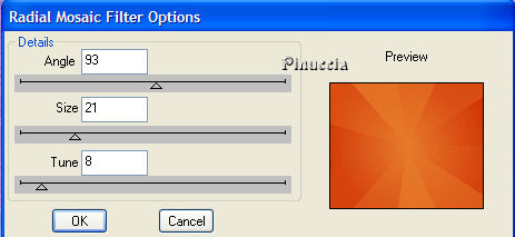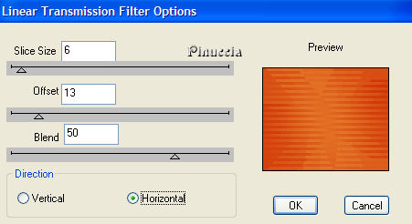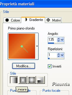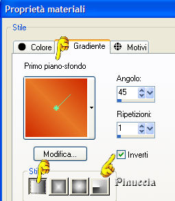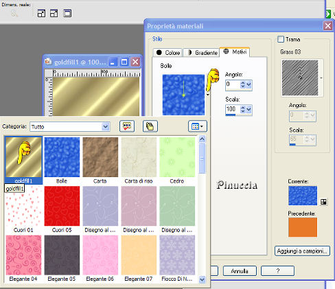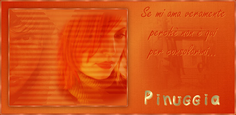 qui puoi trovare qualche risposta ai tuoi dubbi. Se l'argomento che ti interessa non è presente, ti prego di segnalarmelo. Occorrente: Tube Silnic-m214 e Caro3072. Motivo oro (Goldfill1). Pennello LES Brushes1 Animazione: Gold_Border.mng 2 font a scelta. Materiale qui Filtri: Dsb Flux qui FM Tile Tools qui Filters Unlimited 2.0 qui Caro ha permesso l'utilizzo dei suoi tubes soltanto per uso personale. Non potete usarli per i vostri tutorial. Non cambiate il nome al tube e non rimuovete il copyright. 1. Apri una nuova immagine trasparente 550 x 450 pixels. Imposta il colore di primo piano con #e77929, e il colore di sfondo con #ce2800. Passa il primo piano a Gradiente di primo piano/sfondo con i seguenti settaggi: ![]() Riempi l'immagine con questo gradiente.2. Effetti>Plugins>Dsb Flux / Radial Mosaic: ![]() Effetti>Plugins>Dsb Flux / Linear Transmission: ![]() 3. Regola>Messa a fuoco>Metti a fuoco. ![]() 4. Apri il tube Silnic-m214 e vai a Modifica>Copia. Torna al tuo lavoro e vai a Modifica>Incolla>Incolla come nuovo livello. Cambia la modalità di miscelatura di questo livello in Luce diffusa. Spostalo sul lato destro.5. Apri il tube Caro3072 e vai a Modifica>Copia. Torna al tuo lavoro e vai a Modifica>Incolla>Incolla come nuovo livello. Spostalo sul lato sinistro, in modo che circa metà del viso resti fuori dall'immagine.. Cambia la modalità di miscelatura di questo livello in Luce diffusa e abbassa l'opacità al 50%. ![]() 6. Livelli>Unisci>Unisci tutto. 7. Immagine>Aggiungi bordatura, 2 pixels, simmetriche, con il colore di primo piano (#ce2800). Immagine>Aggiungi bordatura, 2 pixels, con il colore bianco (#ffffff). Con la bacchetta magica (sfumatura e tolleranza 0),seleziona questo bordo bianco e riempilo con il Motivo oro (Goldfill1). Apri Goldfill1 in PSP e, quando cliccherai sul triangolino che apre il menu, lo troverai subito nella lista dei motivi disponibili: ![]() Immagine>Aggiungi bordatura, 2 pixels, simmetriche, con il colore di sfondo. 8. Immagine>Ridimensiona: ![]() 9. Immagine>Aggiungi bordatura, simmetriche non selezionato, con i seguenti settaggi: ![]() 10. Nella paletta dei materiali cambia le impostazioni del gradiente: ![]() Riempi il bordo con il gradiente.Mantieni selezionato. Effetti>Plugins>Unlimited / Paper Textures, Striped Paper fine: ![]() Regola>Messa a fuoco>Metti a fuoco. 11. Selezione>Inverti. Effetti>Effetti 3D>Sfalsa ombra, con i seguenti settaggi: ![]() Selezione>Nessuna selezione. ![]() 12. Livelli>Nuovo livello raster. Imposta il colore di sfondo con il colore scuro di primo piano (#e77929). Attiva lo strumento Pennello , cerca il pennello LES Brushes1 e applicalo nel bordo a destra.Effetti>Plugins>FM Tile Tools /Blend Emboss, con i settaggi standard. ![]() 13. Il colore di sfondo è sempre impostato con il colore scuro, chiudi il colore di primo piano e attiva lo strumento Testo ![]() Scegli un bel font e scrivi un testo come vettore. Livelli>Converti in livello raster. Effetti>Effetti 3D>Sfalsa ombra, con i seguenti settaggi e con il colore di primo piano (#e77929). ![]() Ripeti l'Effetto Sfalsa ombra. 14. Imposta il colore di sfondo sul Motivo oro (Goldfill1). Chiudi il colore di primo piano. Scegli un altro bel font e scrivi il tuo nome. Livelli>Converti in livello raster. Effetti>Effetti 3D>Sfalsa ombra, con gli stessi settaggi, ma questa volta con il colore nero. ![]() 15. Ripeti il passo 7. 16. Non dimenticare il tuo watermark. Immagine>Ridimensiona, a 400 pixels di altezza. ![]() Animazione: Modifica>Copia. Apri Animation Shop. Clicca con il tasto destro del mouse sull'area vuota e Incolla come nuova animazione. ![]() Modifica>Duplica. Clicca sul primo fotogramma per selezionarlo e vai a Modifica>Seleziona tutto. Apri l'animazione Gold_Border.mng. Clicca sul primo fotogramma per selezionarlo e vai a Modifica>Seleziona tutto e poi Modifica>Copia. Torna alla tag e vai a Modifica>Incolla>Incolla nel fotogramma selezionato. Quando hai trovato la posizione corretta rilascia il tasto del mouse. Se non sei soddisfatto, puoi sempre tornare indietro con Modifica>Annulla Incolla, e ripetere l'operazione. Per controllare il risultato clicca su Visualizza ![]() Animazione>Proprietà fotogramma, e imposta la velocità dell'animazione a 11. ![]() ![]() Se hai problemi o dubbi, o trovi un link non funzionante, o anche soltanto per un saluto, scrivimi. Ottobre 2006 |