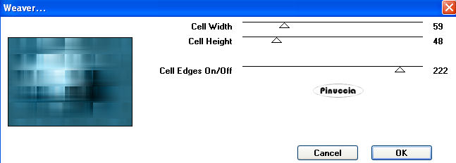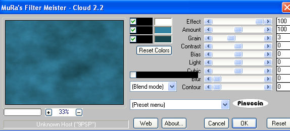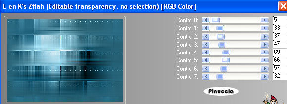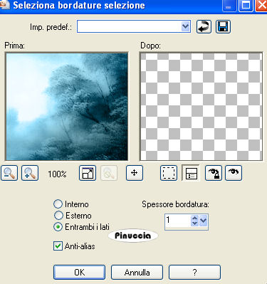 qui puoi trovare qualche risposta ai tuoi dubbi. Se l'argomento che ti interessa non è presente, ti prego di segnalarmelo. Occorrente: Materiale qui Nello zip trovi: i tubes Kat_0294, Marief_2006_aout_misted_Bergkvist017 e KAT_2007_020245. due animazioni: eye_shine.mng e magic_shine.mng. Filtri: Mura's Meister qui Toadies qui L & K Site of Wonders - Zitah qui Filters Unlimited qui Graphics Plus qui 1. Apri una nuova immagine trasparente 700x500 pixels. Imposta il colore di primo piano con #3583a2, e il colore di sfondo con #19454f. 2. Effetti>Plugins>Mura's Meister - Cloud: ![]() Questo filtro lavora con i colori impostati come colore di primo piano e sfondo. E tiene in memoria questi colori finchè il programma non viene chiuso. Pertanto, se - da quando hai aperto PSP - hai già usato questo filtro, controlla che i colori impostati siano quelli corretti. 3. Selezione>Seleziona tutto. Livelli>Nuovo livello raster. Apri il tube Kat_0294 e vai a Modifica>Copia. Torna al tuo lavoro e vai a Modifica>Incolla>Incolla nella selezione. Selezione>Nessuna selezione. Nella paletta dei livelli cambia la modalità di miscelatura di questo livello in Luminanza (esistente). 4. Livelli>Unisci>Unisci visibile. Livelli>Duplica. Nascondi il livello superiore e attiva quello inferiore. Effetti>Plugins>Toadies - Weaver: ![]() Effetti>Effetti di bordo>Aumenta. Effetti>Plugins>L&K - Zitah: ![]() 5. Attiva il livello superiore e rendilo nuovamente visibile. Immagine>Ridimensiona, all'80%, bicubica, tutti i livelli non selezionato: ![]() 6. Selezione>Seleziona tutto. Selezione>Mobile. Selezione>Immobilizza. Selezione>Modifica>Seleziona bordature selezione: ![]() Riempi la selezione con il colore scuro di sfondo.per riempire con il colore di sfondo, devi cliccare con il tasto destro del mouse Mantieni selezionato. Effetti>Plugins>Graphics Plus - Cross Shadow, con i settaggi standard: ![]() Ripeti l'Effetto Cross Shadow. Selezione>Nessuna selezione. Effetti>Effetti 3D>Sfalsa ombra: ![]() 7. Apri il tube Marief_2006_aout_misted_Bergkvist017 e vai a Modifica>Copia. Torna al tuo lavoro e vai a Modifica>Incolla>Incolla come nuovo livello. Immagine>Ridimensiona, al 70%, bicubica, tutti i livelli non selezionato. Immagine>Rifletti. Cambia la modalità di miscelatura di questo livello in Luminanza (esistente). Sposta , il tube in modo che sembri seduto sotto l'albero.Abbassa l'opacità del livello al 90%. ![]() 8. Apri il tube KAT_2007_020245 e vai a Modifica>Copia. Torna al tuo lavoro e vai a Modifica>Incolla>Incolla come nuovo livello. Sposta il tube a destra.Immagine>Ridimensiona, al 120%, bicubica, tutti i livelli non selezionato. Livelli>Duplica. 9. Livelli>Unisci>Unisci visibile. ![]() Selezione>Seleziona tutto. Seleziona>Modifica>Contrai, di 12 pixels. Selezione>Inverti. Imposta il colore di primo piano a Gradiente di primo piano/sfondo, con i seguenti settaggi: ![]() Riempi la selezione con il gradiente.Mantieni selezionato. 10. Effetti>Plugins>Filters Unlimited 2.0 - Buttons and Frames - Glass Frame1: ![]() Selezione>Nessuna selezione. 11. Imposta il colore di sfondo con il colore chiaro (#3583a2) e chiudi il colore di primo piano. Attiva lo strumento Testo .Seleziona un font, crea come vettore, e scrivi il tuo testo a sinistra dell'immagine. Ruotalo un po' prima di posizionarlo. Io l'ho appoggiato al tronco dell'albero. Livelli>Converti in livello raster. Effetti>Effetti 3D>Sfalsa ombra, con i seguenti settaggi, con il colore sfondo. ![]() Ripeti l'Effetto Sfalsa ombra. Aggiungi il tuo watermark o la tua firma. Livelli>Unisci>Unisci tutto. 12. Modifica>Copia. Apri Animation Shop. Clicca con il tasto destro del mouse sullo spazio vuoto e Incolla come nuova animazione. ![]() Clicca sull'immagine e vai a Modifica>Duplica, e ripeti finchè non avrai ottenuto 4 fotogrammi. Clicca sul primo fotogramma e vai a Modifica>Seleziona tutto. 13. Apri l'animazione eye_shine.mng. Clicca sul primo fotogramma e vai a Modifica>Seleziona tutto e poi Modifica>Copia. Torna al tuo lavoro e ingrandisci un po' l'immagine (portando in avanti la rotellina del mouse), per vedere meglio il punto dell'occhio dove posizionare l'animazione: ![]() Modifica>Incolla>Incolla nel fotogramma selezionato e, quando hai trovato la posizione corretta, rilascia il tasto del mouse. Ripeti Modifica>Incolla>Incolla nel fotogramma selezionato per posizionare l'animazione sull'altro occhio. Per controllare il risultato clicca su Visualizza ![]() Ricorda che, se non sei soddisfatto, puoi andare a Modifica>Annulla Incolla e ripetere il passaggio. 14. Apri la seconda animazione magic_shine.mng e ripeti gli stessi passaggi per posizionare l'animazione davanti alla mano dell'elfo sotto l'albero. Per finire, correggi la velocità: Animazione>Proprietà fotogramma, e imposta a 20. ![]() Salva il blend in formato gif. ![]() Se hai problemi o dubbi, o trovi un link non funzionante, o anche soltanto per un saluto, scrivimi . 23 Febbraio 2007 |