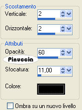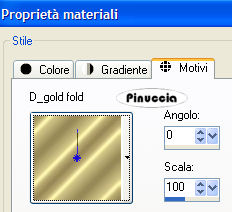qui puoi trovare qualche risposta ai tuoi dubbi. Se l'argomento che ti interessa non è presente, ti prego di segnalarmelo. Occorrente: Materiale qui Filtro Graphics Plus - Cross Shadow qui Apri il font e minimizzalo nella tua area di lavoro. Lo troverai nella lista dei font disponibili, quando ti servirà. 1. Apri una nuova immagine trasparente 600 x 400 pixels. Imposta il colore di primo piano con #bb2d19 e riempi l'immagine con questo colore.Apri il tube Dramatic View e vai a Modifica>Copia. Torna al tuo lavoro e vai a Modifica>Incolla>Incolla come nuovo livello. Sposta il tube a destra contro il bordo.Cambia la modalità di miscelatura di questo livello in Moltiplica. ![]() 2. Attiva lo strumento Selezione , rettangolo,e traccia un rettangolo in alto a sinistra. ![]() Livelli>Nuovo livello raster. 3. Apri l'immagine New York. Livelli>Carica/Salva maschera>Carica maschera da disco. Cerca e carica la maschera 20-20: ![]() Livelli>unisci>Unisci gruppo. Modifica>Copia. Modifica>Incolla nella selezione. Passa il colore di primo piano a Motivi e seleziona il motivo Gold-fold: ![]() Selezione>Modifica>Seleziona bordature selezione: ![]() Livelli>Nuovo livello raster. Riempi con il motivo oro.Selezione>Nessuna selezione. Livelli>Unisci>Unisci giù. Effetti>Effetti 3D>Sfalsa ombra, con i seguenti settaggi: ![]() ![]() 4. Apri il tube Form e vai a Modifica>Copia. Torna al tuo lavoro e vai a Modifica>Incolla>Incolla come nuovo livello. Spostalo sotto il rettangolo.![]() Clicca con la bacchetta magica nella serie di strisce in alto a destra e in basso a sinistra.Livelli>Nuovo livello raster. Apri l'immagine Naturgewalt e vai a Modifica>Copia. Torna al tuo lavoro e vai a Modifica>Incolla>Incolla nella selezione. Selezione>Nessuna selezione. ![]() Attiva il livello con la Forma e clicca con la bacchetta magica ![]() nelle strisce parallele alle precedenti. 5. Livelli>Nuovo livello raster. Modifica>Incolla>Incolla nella selezione (l'immagine Naturgewalten è ancora in memoria). Selezione>Nessuna selezione. Chiudi i livelli dello sfondo, della donna e del tube Form. Livelli>Unisci>Unisci visibile. 6. Rendi nuovamente visibili tutti i livelli. Cambia la modalità di miscelatura del livello uniti in Luminanza (esistente). ![]() Attiva il livello della Forma. ![]() Effetti>Effetti 3D>Sfalsa ombra, con i settaggi applicati all'immagine New York. ![]() 7. Livelli>Unisci>Unisci tutto. Immagine>Aggiungi bordatura, 2 pixels, simmetriche, con il colore bianco. Seleziona il bordo con la bacchetta magica ,e riempilo con il motivo oro.Effetti>Plugins>Graphics Plus - Cross Shadow, con i settaggi standard, due volte: ![]() Selezione>Nessuna selezione. Immagine>Aggiungi bordatura, 2 pixels, simmetriche, con il colore nero. Immagine>Aggiungi bordatura, simmetriche non selezionato, con il colore bianco. ![]() Imposta il colore di primo piano con #bb2d19, e il colore di sfondo con #440800. Con questi colori crea un Gradiente di primo piano/sfondo, stile lineare, con i seguenti settaggi: ![]() Seleziona il bordo bianco con la bacchetta magica ,e riempilo con il gradiente.Effetti>Plugins>Graphics Plus - Cross Shadow, con i settaggi standard. 8. Immagine>Aggiungi bordatura, 2 pixels, simmetriche, con il colore nero. Immagine>Aggiungi bordatura, 2 pixels, simmetriche, con il colore bianco. Seleziona il bordo bianco con la bacchetta magica ,e riempilo con il motivo oro.Effetti>Plugins>Graphics Plus - Cross Shadow, con i settaggi standard, due volte. Selezione>Nessuna selezione. Immagine>Aggiungi bordatura, 2 pixels, simmetriche, con il colore nero. ![]() 9. Livelli>Nuovo livello raster. Attiva lo strumento Pennello ![]() cerca e seleziona il pennello Dramatic. Imposta il colore di primo piano con il motivo Gold-fold, e applica il pennello con il colore di primo piano sulla destra della Forma. Effetti>Effetti 3D>Sfalsa ombra: ![]() Livelli>Unisci>Unisci tutto. ![]() 10. Attiva lo strumento Testo , font Penultimate, crea come vettore,e scrivi il tuo nome nella striscia in basso. Usa i nodi della griglia per allargare il testo. Livelli>Converti in livello raster. Effetti>Plugins>Graphics Plus - Cross Shadow, con i settaggi standard. Effetti>Effetti 3D>Sfalsa ombra, con i settaggi usati per il pennello. Non dimenticare il tuo watermark. Immagine>Ridimensiona, a 550 pixels di larghezza. Salva in formato jpg. ![]() Se hai problemi o dubbi, o trovi un link non funzionante, o anche soltanto per un saluto, scrivimi. 5 Giugno 2007 |