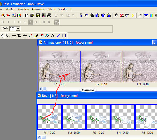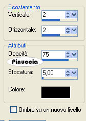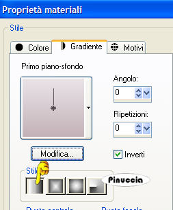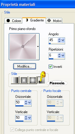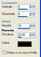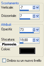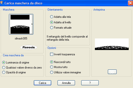 qui puoi trovare qualche risposta ai tuoi dubbi. Se l'argomento che ti interessa non è presente, ti prego di segnalarmelo. Occorrente: Il tube hmo_godess di Mounier, la GIF. Datei Dove, la maschera silmask005 (mettila nella cartella Maschere), un bel font, i tube di una stella e di un diamante. Materiale qui Mounier ha concesso soltanto l'uso personale dei suoi tubes. Non puoi usarli per i tuoi tutorials. Non cambiare il nome del file e non cancellare il livello del copyright. 1. Apri il tube hmo_godess di Mounier. Scegli dal tube un colore chiaro come colore di primo piano e un colore scuro come colore di sfondo. 2. Passa il colore di primo piano a Gradiente di primo piano/sfondo, con i seguenti settaggi: ![]() Apri una nuova immagine trasparente 1024 x 350 pixels, e riempila con il gradiente.Regola>Sfocatura>Sfocatura gaussiana, raggio 15. ![]() 3. Effetti>Effetti di distorsione>Tasselli: ![]() Effetti>Effetti di bordo>Aumenta, due volte. 4. Effetti>Effetti di immagine>Motivo unico. ![]() 5. Livelli>Carica/Salva maschera>Carica maschera da disco. Cerca e carica la maschera silmask005: ![]() Livelli>Unisci>Unisci gruppo. ![]() Minimizza l'immagine per il momento. 6. Apri una nuova immagine trasparente 1024 x 768 pixels. 7. Cambia i settaggi del gradiente: ![]() Riempi l'immagine trasparente con il gradiente.Regola>Aggiungi/Rimuovi disturbo>Aggiungi disturbo: ![]() 8. Attiva il tube hmo_godess e vai a Modifica>Copia. Torna al tuo lavoro e vai a Modifica>Incolla>Incolla come nuovo livello. Spostalo sul bordo in basso a sinistra.Livelli>Duplica. Immagine>Rifletti. Cambia la modalità di miscelatura di questo livello in Luminanza (esistente), e abbassa l'opacità al 30%. ![]() Attiva il livello del tube originale. Effetti>Effetti 3D>Sfalsa ombra: ![]() 9. Attiva il livello superiore. Attiva ora la prima immagine che hai messo da parte al punto 5 e vai a Modifica>Copia. Torna all'immagine più grande e vai a Modifica>Incolla>Incolla come nuovo livello. Effetti>Effetti 3D>Sfalsa ombra, con i seguenti settaggi, ombra su nuovo livello selezionato: ![]() 10. Livelli>Unisci>Unisci visibile. 11. Inverti i colori di primo piano e sfondo. Attiva lo strumento Testo , e scegli un bel font.Io ho usato un font standard di Windows: Edwardian Script. Imposta crea come vettore, scrivi il tuo testo e posizionalo. Livelli>Converti in livello raster. Effetti>Effetti 3D>Sfalsa ombra, con i settaggi usati al punto 9, ma togliendo la spunta a Ombra su nuovo livello. ![]() 12. Attiva il tube del diamante e vai a Modifica>Copia. Torna al tuo lavoro e vai a Modifica>Incolla>Incolla come nuovo livello. Posizionalo come nel mio esempio.Effetti>Effetti 3D>Sfalsa ombra: ![]() Apri il tube della stella e vai a Modifica>Copia. Torna al tuo lavoro e vai a Modifica>Incolla>Incolla come nuovo livello. Posiziona la stella sul diamante.Chiudi i due livelli inferiori. Posizionati su uno dei due livelli rimasti (il diamante e la stella) e vai a Livelli>Unisci>Unisci visibile. Livelli>Duplica, 6 volte, e avrai un totale di 7 livelli uniti. Rendi nuovamente visibili i due livelli inferiori. Disponi il diamante con la stella sull'arco della maschera, come nel mio esempio.Se vuoi, aggiungi un paio di stelle sul testo, come nell'esempio finale. Aggiungi il tuo nome e/o il tuo watermark. Livelli>Unisci>Unisci tutto. ![]() 14. Modifica>Copia. Apri Animation Shop. Clicca con il tasto destro del mouse sullo spazio vuoto e Incolla come nuova animazione. ![]() Modifica>Duplica, e ripeti finchè non avrai 9 fotogrammi. Clicca sul primo fotogramma per selezionarlo e vai a Modifica>Seleziona tutto. 15. Apri l'animazione della colomba Dove.gif. Clicca sul primo fotogramma per selezionarlo e vai a Modifica>Seleziona tutto. per una migliore visuale delle immagini aperte in Animation usa la rotellina del mouse. Portandola indietro l'immagine rimpicciolisce. 12. Tenendo premuto il tasto sinistro del mouse, trascina il primo fotogramma della gif sul primo fotogramma del tuo lavoro. ![]() Quando hai trovato la posizione corretta rilascia il tasto del mouse, attendi qualche secondo e vedrai l'animazione incollata su tutti i fotogrammi. ![]() Attiva la tua animazione. Modifica>Seleziona tutto. Animazione>Proprietà fotogramma, e imposta la velocità a 20. ![]() ![]() Se hai problemi o dubbi, o trovi un link non funzionante, o anche soltanto per un saluto, scrivimi. 3 Luglio 2007 |
