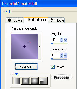 qui puoi trovare qualche risposta ai tuoi dubbi. Se l'argomento che ti interessa non è presente, ti prego di segnalarmelo. Occorrente: Materiale qui Filtri: Penta.com qui Graphics Plus qui Metti le selezioni nella cartella Selezioni di PSP. Apri il motivo argento MD-Silver-4 e minimizzalo nella tua area di lavoro. Lo troverai nella lista dei motivi disponibili, quando ti servirà. Metti la maschera nella cartella Maschere di PSP. Apri il font e minimizzalo nella tua area di lavoro. Lo troverai nella lista dei font disponibili quando userai lo strumento Testo. Yoka ha permesso l'uso soltanto personale dei suoi tubes. Non puoi usarli per i tuoi tutorial. Non cambiare il nome del file e non cancellare il livello del copyright. 1. Apri una nuova immagine trasparente 600 x 450 pixels. Imposta il colore di primo piano con #a594d1, e il colore di sfondo con #595278. Passa il colore di primo piano a Gradiente di primo piano/sfondo, stile lineare, con i seguenti settaggi: ![]() Riempi l'immagine trasparente con questo gradiente.2. Effetti>Plugins>Penta.com - Dot and Cross: ![]() Regola>Messa a fuoco>Metti a fuoco. 3. Livelli>Nuovo livello raster. Selezione>Carica/Salva selezione>Carica selezione da disco: cerca e carica la selezione Extravagant1: ![]() 4. Cambia i settaggi del gradiente: ![]() Riempi la selezione con questo gradiente.5. Effetti>Plugins>Graphics Plus, Cross Shadow: ![]() 6. Effetti>Plugins>Penta.com - Jeans: ![]() Regola>Messa a fuoco>Metti a fuoco. 7. Selezione>Modifica>Contrai, di 4 pixels. Selezione>Inverti. Selezione>Mobile. Selezione>Immobilizza. Livelli>Nuovo livello raster. Imposta il colore di primo piano su Motivi e seleziona il motivo argento che hai trovato nello zip: MD4-Silver-4. Riempi la selezione con questo Motivo.8. Effetti>Plugins>Graphics Plus - Cross Shadow, con i settaggi standard: ![]() Ripeti l'Effetto Cross Shadow. 9. Selezione>Nessuna selezione. 10. Livelli>Unisci>Unisci giù. Effetti>Effetti 3D>Sfalsa ombra, con i seguenti settaggi: ![]() ![]() 11. Livelli>Duplica. Immagine>Ridimensiona, al 75%, ricampionamento bicubica, tutti i livelli non selezionato: ![]() 12. Livelli>Duplica. Immagine>Ridimensiona, al 75%, bicubica, tutti i livelli non selezionato. 13. Nascondi il livello inferiore e posizionati su uno dei tre livelli superiori. Livelli>Unisci>Unisci visibile. 14. Puoi rendere nuovamente visibile il livello inferiore. Posizionati sul livello superiore (Uniti). Livelli>Duplica. Immagine>Rifletti. ![]() 15. Apri il tube Yoka-metal-lady e vai a Modifica>Copia. Torna al tuo lavoro e vai a Modifica>Incolla>Incolla come nuovo livello. 16. Livelli>Carica/Salva maschera>Carica maschera da disco: cerca e carica la maschera 20-20: ![]() Livelli>Unisci>Unisci gruppo. 17. Livelli>Unisci>Unisci visibile. ![]() 18. Livelli>Nuovo livello raster. Selezione>Carica/Salva selezione>Carica selezione da disco: cerca e carica la selezione Extravagant2. ![]() Riempi la selezione con il Motivo argento.Selezione>Modifica>Contrai, di 2 pixels. Selezione>Inverti. Selezione>Mobile. Selezione>Immobilizza. Livelli>Nuovo livello raster. Riempi con l'ultimo gradiente utilizzato.Effetti>Plugins>Graphics Plus - Cross Shadow, con i settaggi standard: ![]() Ripeti l'Effetto Cross Shadow. Livelli>Unisci>Unisci giù. Effetti>Effetti 3D>Sfalsa ombra, con i settaggi precedenti. 19. Livelli>Duplica. Immagine>Rifletti. 20. Livelli>Unisci>Unisci visibile. 21. Imposta il colore di primo piano sul motivo argento, e il colore di sfondo sul secondo gradiente utilizzato. Attiva lo strumento Testo ,Seleziona il font 007 GoldenEye, crea come vettore, dimensione 50, pennellata 1. Scrivi il tuo testo sulla tag. Sposta il testo sulla striscia inferiore e, usando i nodi vettori, allargalo per adattarlo tra le due frecce, vedi il mio esempio. Livelli>Converti in livello raster. Effetti>Plugins>Graphics Plus - Cross Shadow, con i settaggi standard. Effetti>Effetti 3D>Sfalsa ombra: ![]() ![]() 22. Chiudi il colore di primo piano e imposta il colore di sfondo con il colore scuro. Seleziona un altro font e scrivi il tuo nome. Immagine>Ruota>Ruota per gradi, 90 gradi a sinistra, tutti i livelli non selezionato. ![]() Spostalo sul lato destro. Livelli>Converti in livello raster. Effetti>Effetti 3D>Sfalsa ombra, con i settaggi precedenti. Livelli>Duplica. Sposta il duplicato sull'altro lato.23. Livelli>Unisci>Unisci tutto. Immagine>Aggiungi bordatura, 3 pixels, simmetriche, con il colore scuro di sfondo. Immagine>Aggiungi bordatura, 5 pixels, simmetriche, con il colore chiaro di primo piano. Immagine>Aggiungi bordatura, 3 pixels, simmetriche, con il colore scuro. 24. Selezione>Seleziona tutto. Selezione>Modifica>contrai, di 11 pixels. Selezione>Inverti. Effetti>Plugins>Graphics Plus - Cross Shadow, con i settaggi standard. Effetti>Effetti 3D>Sfalsa ombra, con i settaggi usati al punto 22: ![]() Ripeti l'Effetto Sfalsa ombra, ma con i valori verticale e orizzontale invertiti. ![]() Aggiungi, se vuoi, il tuo watermark, e salva in formato jpg. ![]() Le vostre versioni. Grazie ![]() ![]() ![]() Cookies ![]() Se hai problemi o dubbi, o trovi un link non funzionante, o anche soltanto per un saluto, scrivimi. 3 Aprile 2007 |