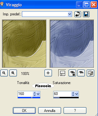qui puoi trovare qualche risposta ai tuoi dubbi. Se l'argomento che ti interessa non è presente, ti prego di segnalarmelo. Occorrente: Scegli due belle immagini fantasia, o usa quelle fornite con il tutorial. Materiale qui Filtri: Graphics Plus qui FM Tile Tools qui Greg's Factory Output II qui Fotomatic qui xero qui 1. Scegli dalle immagini due tonalità di verde, una chiara come colore di primo piano e una scura come colore di sfondo. Crea un gradiente lineare, con i seguenti settaggi: ![]() 2. Apri una nuova immagine trasparente 800 x 600 pixels, e riempila con questo gradiente.3. Selezione>Seleziona tutto. Livelli>Nuovo livello raster. 4. Apri il file Aquarium e vai a Modifica>Copia. Torna al tuo lavoro e vai a Modifica>Incolla>Incolla nella selezione. Selezione>Nessuna selezione. Cambia la modalità di miscelatura di questo livello in Luminanza (esistente). 5. Attiva lo strumento Pennello distorsione ,con i seguenti settaggi: ![]() Distorci l'immagine in modo da avere pressappoco qualcosa di simile a questo: ![]() Abbassa la trasparenza di questo livello tra il 30 e il 40%. 6. Apri una delle immagini di fantasia (puoi usare quelle fornite con il tutorial, o altre di tua scelta). Immagine>Ridimensiona a 600 pixels di altezza. Livelli>Carica/salva maschera>Carica maschera da disco: cerca e carica la maschera 20-20: ![]() Livelli>Unisci>Unisci gruppo. Modifica>Copia. Torna al tuo lavoro e vai a Modifica>Incolla>Incolla come nuovo livello. Posiziona l'immagine e cambia la modalità di miscelatura in Luminanza (esistente). 7. Attiva la seconda immagine e segue gli stessi passaggi del passo 6. 8. Allo stesso modo, procedi con la terza immagine (Fruits). A questa terza immagine ho ridotto l'opacità al 60% e nella paletta dei livelli ho spostato il livello sotto quello delle ragazze. 9. Se necessario, puoi ancora spostare un po' le immagini per sistemarle meglio. Quando sei soddisfatto: Livelli>Unisci>Unisci visibile. Effetti>Plugins>FM Tile Tools - Blend Emboss, con i settaggi standard: ![]() Ripeti l'Effetto Blend Emboss. Effetti>Plugins>Xero - Porcelain, con i settaggi standard. ![]() 10. Regola>Saturazione e tonalità>Viraggio: ![]() 11. Effetti>Plugins>Xero - Moodlight, clicca su Random, finchè non trovi una tonalità che ti piace. ![]() 12. Selezione>Seleziona tutto. Livelli>Nuovo livello raster. Scegli ancora due colori dal tuo lavoro e con questi colori crea un gradiente lineare, con i seguenti settaggi: ![]() Riempi il nuovo livello con questo gradiente.Selezione>Modifica>Contrai, di 7 pixels. Premi sulla tastiera il tasto CANC. Selezione>Inverti. Effetti>Plugins>Graphics Plus - Cross Shadow, con i settaggi standard: ![]() Effetti>Plugins>Greg's Factory Output II, Pool Shadow, con i settaggi standard: ![]() Effetti>Effetti 3D>Sfalsa ombra, con i seguenti settaggi: ![]() Selezione>Nessuna selezione. 13. Livelli>Unisci>Unisci tutto. 14. Attiva lo strumento Testo e scegli un font.Io ho usato Fiolex Girls. Imposta il gradiente come colore di sfondo e chiudi il colore di primo piano. Scrivi il tuo testo e posizionalo. Livelli>Converti in livello raster. Effetti>Plugins>Graphics Plus - Cross shadow, con i settaggi standard. Effetti>Plugins>Greg's Factory Output II, Pool Shadow, con i settaggi standard. Effetti>Effetti 3D>sfalsa ombra: ![]() Ripeti l'Effetto sfalsa ombra, cambiando verticale e orizzontale a -1. 15. Livelli>Unisci>Unisci tutto. 16. Effetti>Plugins>Fotomatic - Skygrad: ![]() Immagine>Capovolgi. Effetti>Plugins>Fotomatic - Skygrad: ![]() Immagine>Capovolgi. Aggiungi la tua firma o il tuo watermark. Salva in formato jpg. ![]() ![]() Se hai problemi o dubbi, o trovi un link non funzionante, o anche soltanto per un saluto, scrivimi. Gennaio 2007 |