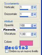 qui puoi trovare qualche risposta ai tuoi dubbi. Se l'argomento che ti interessa non è presente, ti prego di segnalarmelo. Occorrente: Materiale qui 4 tubes, un pennello e un font. Filtri: FM Tile Tools qui Graphics Plus qui Xero qui Color Rave- Atmospherizer 1.1 qui 1. Apri una nuova immagine trasparente 800 x 600 pixels. Riempila con il colore #8080ff.2. Apri il tube "Meer" e vai a Modifica>Copia. Torna la tuo lavoro e vai a Modifica>Incolla>Incolla come nuovo livello. Cambia la modalità di miscelatura di questo livello in Luminanza (esistente) e abbassa l'opacità all'82%. Spostalo contro il bordo inferiore.![]() 3. Apri il tube "Insel" e vai a Modifica>Copia. Torna al tuo lavoro e vai a Modifica>Incolla>Incolla come nuovo livello. Spostalo in alto a destra.![]() 4. Apri il tube Susan T786 e vai a Modifica>Copia. Torna al tuo lavoro e vai a Modifica>Incolla>Incolla come nuovo livello. Spostalo in alto a sinistra.Cambia la modalità di miscelatura di questo livello in Luminanza (esistente) e abbassa l'opacità al 72%. ![]() 5. Apri il tube "Delphine" e vai a Modifica>Copia. Torna al tuo lavoro e vai a Modifica>Incolla>Incolla come nuovo livello. Spostalo in basso al centro.Cambia la modalità di miscelatura in Luminanza (esistente). ![]() 6. Livelli>Unisci>Unisci tutto. 7. Effetti>Plugins>FM Tile Tools, Blend Emboss, con i settaggi standard. ![]() 8. Effetti>Plugins>Color Rave - Atmospherizer 1.1, con i settaggi standard: ![]() 9. Effetti>Plugins>Xero, Porcelain, con i settaggi standard: ![]() 10. Apri il tube SilverHearts e vai a Modifica>Copia. Torna al tuo lavoro e vai a Modifica>Incolla>Incolla come nuovo livello. Immagine>Rifletti e sposta i cuori a sinistra della testa della donna.![]() Modifica>Incolla>Incolla come nuovo livello (i cuori sono ancora in memoria). Immagine>Capovolgi e posiziona i cuori alla fine dell'altro tube.![]() Livelli>Unisci>Unisci giù. Regola>Messa a fuoco>Metti a fuoco. Effetti>Effetti 3D>Sfalsa ombra: Livelli>Unisci>Unisci tutto. 11. Livelli>Nuovo livello raster. Imposta il colore di primo piano con il bianco (#ffffff). Attiva lo strumento Pennello ![]() cerca e seleziona il pennello "Didnt believe", e applicalo sul blend in alto a destra. Effetti>effetti 3D>Sfalsa ombra: ![]() Regola>Messa a fuoco>Metti a fuoco. 12. Livelli>Unisci>Unisci visibile. Attiva lo strumento Testo ![]() seleziona il font November, dimensione 55, corsivo, crea come vettore, colore di primo piano chiuso e colore di sfondo impostato sul bianco. Scrivi il tuo testo in basso a sinistra. Livelli>Converti in livello raster. 13. Attiva lo strumento Bacchetta magica ![]() e seleziona l'interno delle lettere. Apri nuovamente il tube "Delphine" e vai a Modifica>Copia. Torna al tuo lavoro e vai a Modifica>Incolla>Incolla nella selezione. Selezione>Nessuna selezione. Effetti>Effetti 3D>Sfalsa ombra, con i settaggi del passo 11. Ripeti l'Effetto Sfalsa ombra, ma cambiando verticale e orizzontale a -1. Livelli>Unisci>Unisci tutto. 14. Livelli>Nuovo livello raster. Selezione>Seleziona tutto. Riempi con #39868d.Selezione>Modifica>Contrai, di 7 pixels. Premi sulla tastiera il tasto CANC. Selezione>Inverti. Effetti>Plugins>Graphics Plus, Cross Shadow, con i settaggi standard. ![]() Ripeti l'Effetto Cross Shadow. Effetti>Effetti 3D>Sfalsa ombra, con i settaggi del passo 11. Selezione>Nessuna selezione. 15. Livelli>Unisci>Unisci tutto. Non dimenticare di aggiungere la tua firma o il tuo watermark. Salva in formato jpg. ![]() Se hai problemi o dubbi, o trovi un link non funzionante, o anche soltanto per un saluto, scrivimi. Gennaio 2007 |
