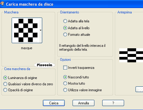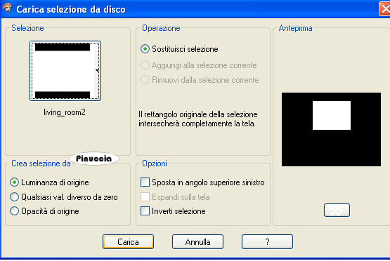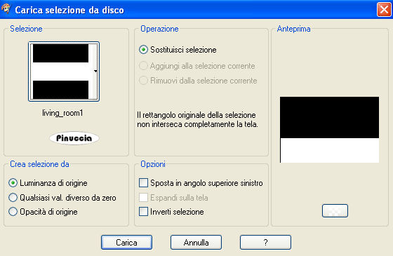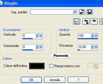 qui puoi trovare qualche risposta ai tuoi dubbi. Se l'argomento che ti interessa non è presente, ti prego di segnalarmelo. Occorrente: Materiale qui Nello zip trovi: i tubes Pat_Wolf_Pasticcio_Too_WS_0135_VanesseMarcil_J, SKF_Flower2 e un Flacone. una maschera e quattro selezioni. Metti la maschera nella cartella Maschere. Metti le selezioni nella cartella Selezioni. Ti servirà anche una bella immagine a tua scelta. 1. Apri una nuova immagine trasparente 600 x 450 pixels. Imposta il colore di primo piano con il bianco e il colore di sfondo con il nero. Riempi l'immagine trasparente con il bianco.Livelli>Nuovo livello raster. Selezione>Carica/Salva selezione>Carica selezione da disco: cerca e carica la selezione living_room1: ![]() Riempi la selezione con il bianco.bianco su bianco non vedrai nulla, ma va bene così. Mantieni selezionato. Livelli>Nuovo livello raster. Riempi con il nero.tasto destro del mouse per riempire con il colore di sfondo 2. Mantieni ancora selezionato. Livelli>Carica/Salva maschera>Carica maschera da disco: cerca e carica la maschera Masque: ![]() Livelli>Unisci>Unisci gruppo. Selezione>Nessuna selezione. Livelli>Unisci>Unisci giù. 3. Attiva lo strumento Deformazione ![]() se stai usando PSP X: strumento puntatore ![]() tenendo premuto il tasto shift, spingi i nodi superiori all'interno, contemporaneamente guarda il righello - che si sposterà contemporaneamente al movimento del mouse - per controllare la posizione. Spingi poi il nodo centrale un po' più in basso. ![]() 4. Selezione>Seleziona tutto. Selezione>Mobile. Selezione>Immobilizza. Selezione>Modifica>Seleziona bordature selezione: ![]() Riempi la selezione con il nero.5. Livelli>Nuovo livello raster. Selezione>Carica/salva selezione>Carica selezione da disco. Cerca e carica la selezione living_room2. ![]() Riempi con il nero.Selezione>Modifica>Contrai, di 6 pixels. Premi sulla tastiera il tasto CANC. ![]() Mantieni selezionato. Livelli>Nuovo livello raster. Attiva l'immagine che hai scelto di usare. Attiva lo strumento Selezione , rettangolo,e seleziona una parte dell'immagine. Modifica>Copia. Ritorna al tuo lavoro e vai a Modifica>Incolla>Incolla nella selezione. Livelli>Nuovo livello raster. Effetti>Effetti 3D>Ritaglio: ![]() Selezione>Nessuna selezione. Livelli>Unisci>Unisci giù. Ripeti Livelli>Unisci>Unisci giù. 6. Livelli>Nuovo livello raster. Selezione>Carica/Salva selezione>Carica selezione da disco. Cerca e carica la selezione living_room3. Riempi la selezione con il nero.Selezione>Modifica>Contrai, di 6 pixels. Premi sulla tastiera il tasto CANC. Mantieni selezionato. Livelli>Nuovo livello raster. Ritorna all'immagine per selezionare un'altro pezzetto da mettere nella cornice. Togli la selezione precedente (Selezione>Nessuna selezione) e scegli un'altra porzione. Modifica>Copia. Torna al tuo lavoro e vai a Modifica>Incolla>Incolla nella selezione. Livelli>Nuovo livello raster. Effetti>Effetti 3D>Ritaglio, con i settaggi precedenti. Selezione>Nessuna selezione. Livelli>Unisci>Unisci giù. Ripeti Livelli>Unisci>Unisci giù. 7. Livelli>Nuovo livello raster. Selezione>Carica/Salva selezione>Carica selezione da disco. Cerca e carica la Selezione living_room4. Riempi la selezione con il nero.Selezione>Modifica>Contrai, di 6 pixels. Premi sulla tastiera il tasto canc. Livelli>Nuovo livello raster. Ritorna ancora all'immagine, togli la selezione precedente e seleziona un'altra porzione. Modifica>Copia. Torna al tuo lavoro e vai a Modifica>Incolla nella selezione. Livelli>Nuovo livello raster. Effetti>Effetti 3D>Ritaglio, con i settaggi precedenti. Selezione>Nessuna selezione. Livelli>Unisci>Unisci giù. Ripeti Livelli>Unisci>Unisci giù. ![]() 8. Ripeti ancora due volte: Livelli>Unisci>Unisci giù, e avrai le tre cornici in un unico livello. ![]() ![]() Effetti>Effetti 3D>Sfalsa ombra: ![]() 9. Apri il tube Pat_Wolf_Pasticcio_Too_WS_0135_VanesseMarcil_J e vai a Modifica>Copia. Modifica>Incolla>Incolla come nuova IMMAGINE. Immagine>Ridimensiona, al 75%, ricampionamento bicubica, tutti i livelli selezionato. ![]() Regola>Messa a fuoco>Metti a fuoco. Modifica>Copia. Torna al tuo lavoro e vai a Modifica>Incolla>Incolla come nuovo livello. Sposta il tube sul bordo del pavimento, vedi il mio esempio.Livelli>Duplica. Livelli>Disponi>Sposta giù. Immagine>Capovolgi (il duplicato). Sposta questo livello (il duplicato) contro l'originale.Abbassa l'opacità del duplicato al 50%. ![]() Attiva lo strumento Gomma: ![]() Cancella attentamente dal tube riflesso il viso e la parte superiore delle braccia. Per la punta del piede, riduci la dimensione della gomma a 10. ![]() 10. Attiva il livello superiore. Effetti>Effetti 3D>Sfalsa ombra: ![]() Apri il tube SKF_Flower2 von Silke e vai a Modifica>Copia. Modifica>Incolla>Incolla come nuova IMMAGINE. Immagine>Ridimensiona, al 25%, bicubica, tutti i livelli selezionato. ![]() Modifica>Copia. Torna al tuo lavoro e vai a Modifica>Incolla>Incolla come nuovo livello. Spostalo in fondo al tube della donna.Livelli>Duplica. Porta il livello duplicato sotto l'originale. Immagine>Capovolgi. Sposta il duplicato sotto il vaso originale.Abbassa l'opacità di questo livello al 50%. ![]() Effetti>Effetti 3D>Sfalsa ombra, con i settaggi usati per le cornici: ![]() 11. Apri il tube del Flacone (p20dozi) e vai a Modifica>Copia. Torna al tuo lavoro e vai a Modifica>Incolla>Incolla come nuovo livello. Immagine>Ridimensiona, al 50%, bicubica, tutti i livelli non selezionato. ![]() Ripeti gli stessi passaggi dei precedenti tubes: Livelli>Duplica. Livelli>Disponi>Sposta giù. Abbassa l'opacità al 50%. Attiva il livello originale. Effetti>Effetti 3D>Sfalsa ombra, con i settaggi precedenti. 12. Livelli>Unisci>Unisci visibile. Selezione>Seleziona tutto. Selezione>Modifica>Contrai, di 6 pixels. Selezione>Inverti. Riempi con il nero.Selezione>Seleziona tutto. Selezione>Modifica>Contrai, di 5 pixel. Selezione>Inverti. Riempi con il bianco.Selezione>Seleziona tutto. Selezione>Modifica>Contrai, di 1