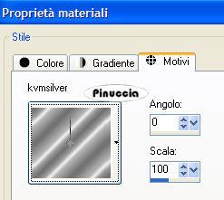 qui puoi trovare qualche risposta ai tuoi dubbi. Se l'argomento che ti interessa non è presente, ti prego di segnalarmelo. Occorrente: Materiale qui Apri il motivo argento "kvmsilver" e minimizzalo nella tua area di lavoro. Lo troverai nella lista dei motivi disponibili, quando ti servirà. Apri il font e minimizzalo nella tua area di lavoro. Lo troverai nella lista dei font disponibili quando ti servirà. Metti il pennello Marilyn nella cartella dei pennelli di PSP. Metti l'ornamento nella cartella degli ornamenti di PSP. Filtri: Graphics Plus qui Penta.com qui Patry e Daisy hanno concesso soltanto l'uso personale dei loro tubes. Non puoi usarli per i tuoi tutorials. Non cambiare il nome del file e non togliere il livello del copyright. 1. Apri una nuova immagine trasparente 700 x 500 pixels. 2. Imposta il colore di primo piano con #4040ff, e il colore di sfondo con #000040. Passa il colore di primo piano a Gradiente di primo piano/sfondo: ![]() 3. Effetti>Plugins>Graphics Plus - Cross Shadow, con i settaggi standard. ![]() ![]() 4. Effetti>Effetti di riflesso>Fuga di specchi: ![]() 5. Attiva il righello: Visualizza>Righelli: ![]() Attiva lo strumento Selezione , rettangoloe disegna un rettangolo al centro dello sfondo. ![]() Livelli>Nuovo livello raster. Riempi la selezione con il gradiente.6. Apri il tube di Daisy Web Starlight e vai a Modifica>Copia. Torna al tuo lavoro e vai a Modifica>Incolla>Incolla nella selezione. 7. Selezione>Modifica>Seleziona bordature selezione: ![]() Cambia i settaggi del Gradiente: ![]() Livelli>Nuovo livello raster. Riempi la selezione dei bordi con il gradiente.Effetti>Plugins>Graphics Plus - Cross Shadow, con i settaggi standard, 2 volte. Effetti>Plugins>Penta.com - Dot and Cross, con i settaggi standard. ![]() Regola>Messa a fuoco>Accentua messa a fuoco. Mantieni selezionato. Effetti>Effetti 3D>Sfalsa ombra, con i seguenti settaggi, con il colore scuro di sfondo. ![]() Ripeti l'Effetto Sfalsa ombra. ![]() Selezione>Nessuna selezione. Livelli>Unisci>Unisci giù. Di nuovo Livelli>Unisci>Unisci giù. 8. Apri il tube PatryMists Celeb Marilyn e vai a Modifica>Copia. Torna al tuo lavoro e vai a Modifica>Incolla>Incolla come nuovo livello. Sposta il tube a destra.Livelli>Duplica. Livelli>Unisci>Unisci giù. In questo modo il tube si vede meglio. ![]() 9. Attiva il livello con l'immagine e attiva lo strumento Gomma ![]() Cancella attentamente i segni della cornice che si notano sul viso di Marilyn: ![]() 10. Adesso posizionati sul livello superiore. Apri il tube PatryMists_06_Rose_03 e vai a Modifica>Copia. Torna al tuo lavoro e vai a Modifica>Incolla>Incolla come nuovo livello. Immagine>Rifletti. Sposta il tube nell'angolo in basso a sinistra.11. Imposta il colore di sfondo su Motivi e seleziona il motivo argento. ![]() Attiva lo strumento Testo