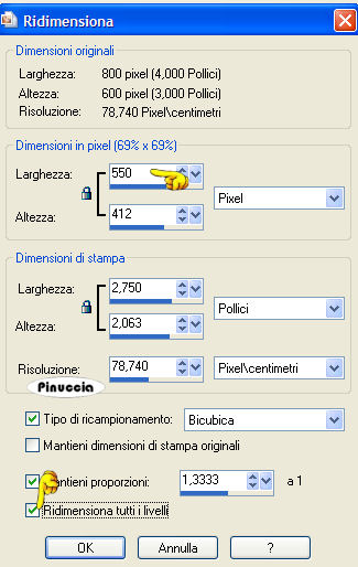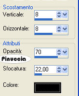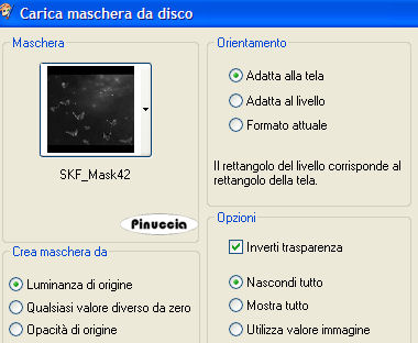 qui puoi trovare qualche risposta ai tuoi dubbi. Se l'argomento che ti interessa non è presente, ti prego di segnalarmelo. Occorrente: Materiale qui Nello zip trovi: i tubes KAT_0048 e flowerinabottle_gbodcheryl806. La maschera SKF_Mask42 (mettila nella cartella maschere), l'ornamento ASD sparkle (mettilo nella cartella Ornamenti). il font ButterflyHeaven (aprilo in PSP e minimizzalo. Lo troverai disponibile nella lista dei font, quando attiverai lo strumento Testo). 1. Apri una nuova immagine trasparente 800 x 600 pixels, e riempila con #2990de.Livelli>Nuovo livello raster. Riempi il nuovo livello con #000004.2. Livelli>Carica/salva maschera>Carica maschera da disco. Cerca e seleziona la maschera SKF_Mask42. ![]() Livelli>Unisci>Unisci gruppo. Copia. Torna al tuo lavoro e vai a Modifica>Incolla>Incolla come nuovo livello. Spostalo più in alto.Livelli>Duplica. Immagine>Capovolgi. Cambia la modalità di miscelatura di questo livello in Luminanza (Esistente) e abbassa l'opacità al 30%. Sposta il tube capovolto, in modo che le dita si tocchino.![]() 4. Apri il tube flowerinabottle_gbodcheryl806 e vai a Modifica>Copia. Torna al tuo lavoro e vai a Modifica>Incolla>Incolla come nuovo livello. Immagine>Ridimensiona, al 60%, ricampionamento bicubica, tutti i livelli non selezionato. ![]() Sposta il flacone a sinistra, sotto i piedi della donna,vedi il mio esempio. Livelli>Duplica. Immagine>Capovolgi. Sposta il flacone capovolto sotto l'originale.Cambia la modalità di miscelatura di questo livello in Luminanza (esistente) e abbassa l'opacità al 30%. Posizionati sul livello originale del flacone. Effetti>Effetti 3D>Sfalsa ombra, con i seguenti settaggi: ![]() 5. Livelli>Unisci>Unisci visibile. 6. Immagine>Ridimensiona, a 550 pixels di larghezza, tutti i livelli selezionato. ![]() Eventualmente: Regola>Messa a fuoco>Metti a fuoco. 7. Immagine>Aggiungi bordatura, 2 pixels, simmetriche, con il colore chiaro (#2990de). Immagine>Aggiungi bordatura, 2 pixels, simmetriche, con il colore scuro (#000004). Immagine>Aggiungi bordatura, 2 pixels, simmetriche, con il colore chiaro. Immagine>Aggiungi bordatura, con il colore scuro, simmetriche non selezionato: ![]() 8. Attiva lo strumento Testo ,seleziona il font ButterflyHeaven, crea come vettore, pennellata 2, dimensione 50. Imposta il colore di primo piano con il colore chiaro e chiudi il colore di sfondo. Scrivi in minuscolo la lettera "c". Sposta la farfalla nell'angolo in alto a sinistra e girala un po' (vedi il mio esempio). Livelli>Converti in livello raster. Se stai usando PSP X, dovrai regolare il settaggio delle dimensioni, perchè i pixel di questa versione non corrispondono a quelli delle precedenti versioni di PSP. Su queste differenze, vedi in fondo a questa pagina 9. Livelli>Duplica. Immagine>Ridimensiona, all'80%, bicubica, tutti i livelli non selezionato. Immagine>Ridimensiona, all'80%, bicubica, tutti i livelli non selezionato. 10. Chiudi il livello di sfondo e posizionati su uno degli altri livelli. Livelli>Unisci>Unisci visibile. ![]() 11. Adesso puoi riaprire il livello di sfondo. Selezione>Seleziona tutto. Selezione>Modifica>Contrai di 6 pixels. Selezione>Inverti. Riempi con il colore chiaro.Selezione>Seleziona tutto. Selezione>Modifica>Contrai, di 4 pixels. Selezione>Inverti. Riempi con il colore scuro.Selezione>Seleziona tutto. Selezione>Modifica>Contrai, di 2 pixels, Selezione>Inverti. Riempi con il colore chiaro.Selezione>Nessuna selezione. Fai attenzione che il bordo non abbia coperto la prima farfalla a sinistra. In questo caso, puoi ancora spostarla un po' ![]() 12. Imposta il colore di sfondo con il colore chiaro e chiudi il colore di primo piano. Attiva nuovamente lo strumento Testo ![]() cerca un bel font e scrivi il tuo nome, come vettore. Livelli>Converti in livello raster. Livelli>Unisci>Unisci giù. 13. Livelli>Nuovo livello raster. Attiva lo strumento Ornamento e seleziona ASD sparkle, dimensione 40.Clicca 3 volte per applicare 3 stelle. Porta la dimensione a 20 e clicca 5 volte. Porta la dimensione a 15 e clicca 8 volte. Regola>Messa a fuoco>Metti a fuoco, 2 volte. Chiudi il livello. 14. Livelli>Nuovo livello raster. Ripeti il passo precedente, aggiungendo le stelle in posizioni diverse e in diverse misure. Avendo chiuso il livello precedente, ovviamente, dovrai andare a memoria. Se vuoi tenerlo aperto per vedere dove hai messo le altre stelle, puoi farlo. Ripeti la Messa a fuoco 2 volte. 15. Livelli>Nuovo livello raster. Ripeti il passo precedente. 16. Posizionati sul livello Uniti (testo e farfalle). Livelli>Duplica, e ripeti. Nascondi i due livelli superiori e attiva il più basso. Regola>Aggiungi/rimuovi disturbo/aggiungi disturbo: ![]() 17. Attiva il secondo livello. Regola>Aggiungi/rimuovi disturbo/aggiungi disturbo, e cambia il disturbo a 40. 18. Attiva il terzo livello. Regola>Aggiungi/rimuovi disturbo/aggiungi disturbo, e porta il disturbo a 50. 19. Attiva il livello di sfondo. Livelli>Duplica, e ripeti. Chiudi tutti i livelli, lasciando visibili il primo livello di sfondo, il primo livello testo+farfalle e il primo livello con le stelle. Livelli>Unisci>Unisci visibile e chiudi questo livello uniti. 20. Apri il secondo livello di sfondo, il secondo livello testo+farfalle e il secondo livello delle stelle. Livelli>Unisci>Unisci visibile e chiudi questo secondo livello uniti. 21. Adesso apri il terzo livello di sfondo, il terzo livello testo+farfalle e il terzo livello delle stelle. Livelli>Unisci>Unisci visibile. Ricordati che, prima di unire i livelli, devi essere posizionato su uno dei livelli visibili. 22. Visualizza tutti i livelli (Livelli>Visualizza>Tutto) e salva in formato PSP. 23. Apri Animation Shop e apri l'immagine che hai appena salvato. 24. Clicca sul primo fotogramma e vai a Modifica>Seleziona tutto. Animazione>Proprietà fotogramma, e imposta la velocità a 20. ![]() 25. Animazione>Ridimensiona animazione, a 600 pixels, di larghezza, bicubica. ![]() Salva in formato jpg. ![]() Se hai problemi o