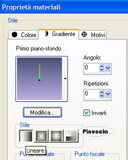 qui puoi trovare qualche risposta ai tuoi dubbi. Se l'argomento che ti interessa non è presente, ti prego di segnalarmelo. Occorrente: Materiale qui Filtri: Factory Gallery D qui Graphics Plus qui I filtri Factory Gallery, per essere usati, devono prima essere convertiti. Come fare vedi qui Apri il font e minimizzalo nella tua area di lavoro. Lo troverai nella lista dei font disponibili, quando userai lo strumento Testo. 1. Apri una nuova immagine trasparente 550 x 450 pixels. Imposta il colore di sfondo con #4b4d76, e il colore di primo piano con #bcaee3. Passa il colore di primo piano a gradiente di primo piano/sfondo, con i seguenti settaggi: ![]() Riempi l'immagine trasparente con questo gradiente.2. Effetti>Plugins>Factory Gallery D - Tunnel Tile: ![]() 3. Attiva lo strumento Selezione , cerchio, tolleranza e sfumatura 0.Traccia una selezione intorno al cerchio: ![]() Modifica>Copia. Modifica>Incolla>Incolla come nuova IMMAGINE. ![]() Copia questa immagine: Modifica>Copia. 4. Torna al tuo lavoro. Mantieni selezionato. Effetti>Effetti 3D>Sfalsa ombra: ![]() Selezione>Nessuna selezione. 5. Modifica>Incolla>Incolla come nuovo livello. Immagine>Ridimensiona, al 75%, ricampionamento bicubica, tutti i livelli non selezionato. ![]() Effetti>Effetti 3D>Sfalsa ombra, con i settaggi usati al passo 4. Sposta il cerchio in basso a sinistra.6. Livelli>Duplica. Immagine>Ridimensiona, al 75%, bicubica, tutti i livelli non selezionato. Sposta questo cerchio un po' più a destra.![]() 7. Apri il tube Goth058, e vai a Modifica>Copia. Torna al tuo lavoro e vai a Modifica>Incolla>Incolla come nuovo livello. Immagine>Ridimensiona, al 90%, bicubica, tutti i livelli non selezionato. Effetti>Effetti 3D>Sfalsa ombra, con i settaggi usati al punto 4. 8. Apri il tube Glass Bubble e vai a Modifica>Copia. Torna al tuo lavoro e vai a Modifica>Incolla>Incolla come nuovo livello. Spostalo in basso sul bordo sinistro.Nella paletta dei livelli cambia la modalità di miscelatura in Luminanza (Esistente). Effetti>Effetti 3D>Sfalsa ombra, con i settaggi precedenti. Livelli>Duplica. Immagine>Ridimensiona, all'80%, bicubica, tutti i livelli non selezionato. Spostalo accanto al tube più grande.Livelli>Duplica. Immagine>Ridimensiona, all'80%, bicubica, tutti i livelli non selezionato. Sposta la palla accanto all'altra.![]() Posizionati sul livello della palla più piccola e vai Modifica>Copia e Modifica>Incolla>Incolla come nuova IMMAGINE. Torna al tuo lavoro e vai a Livelli>Unisci>Unisci visibile. 10. Attiva l'immagine della palla singola e vai a Modifica>Copia. Torna al tuo lavoro e vai a Modifica>Incolla>Incolla come nuovo livello. Sposta la palla nell'angolo in alto a destra.Effetti>Effetti 3D>Sfalsa ombra, con i settaggi precedenti. Livelli>Duplica. Immagine>Ridimensiona, al 60%, bicubica, tutti i livelli non selezionato. Spostala in alto a destra, come preferisci.Ancora una volta Livelli>Duplica. Immagine>Ridimensiona, al 60%, bicubica, tutti i livelli non selezionato. 11. Duplica queste tre palle, in modo da avere tre palle per ogni dimensione e sistemale casualmente, nell'angolo in alto a destra.Un consiglio: se hai usato il tube fornito con il materiale, posiziona una palla sopra i piedi della ragazza. ![]() 12. Livelli>Unisci>Unisci visibile. 13. Imposta il colore di primo piano con #281f50, e il colore di sfondo con #c8c4f1. Attiva lo strumento Testo ,seleziona il font Agent Orange, crea come vettore, corsivo, pennellata 1, la dimensione del font dipenderà dalla lunghezza del tuo nome. Posiziona il nome - usando i nodi vettori - diagonalmente sul lato sinistro della tag. Livelli>Converti in livello raster. Regola>Messa a fuoco>Metti a fuoco, due volte. 14. Livelli>Unisci>Unisci tutto. Immagine>Aggiungi bordatura, 3 pixels, simmetriche, con il colore scuro di sfondo. Immagine>Aggiungi bordatura, 6 pixels, con il colore chiaro di primo piano. Immagine>Aggiungi bordatura, 2 pixels, simmetriche, con il colore scuro. 15. Selezione>Seleziona tutto. Selezione>Modifica>Contrai, di 10 pixels. Selezione>Inverti. Effetti>Plugins>Graphics Plus - Cross Shadow, con i settaggi standard. ![]() Effetti>Effetti 3D>Sfalsa ombra, con i settaggi precedenti. Ripeti l'Effetto Sfalsa ombra, ma cambiando verticale e orizzontale a -2. Selezione>Nessuna selezione. Aggiungi, se vuoi, il tuo watermark, e salva in formato jpg. ![]() Se hai problemi o dubbi, o trovi un link non funzionante, o anche soltanto per un saluto, scrivimi. 3 Aprile 2007 |