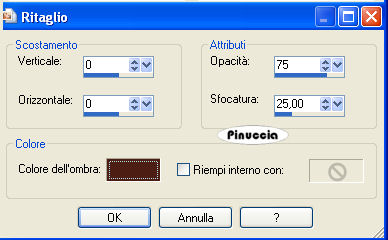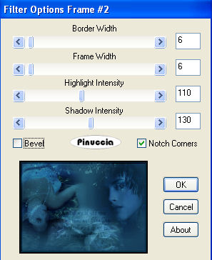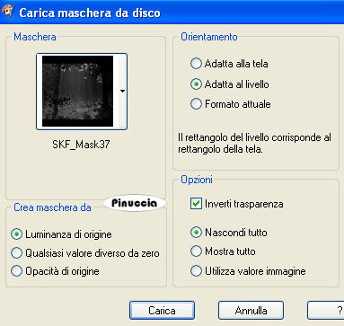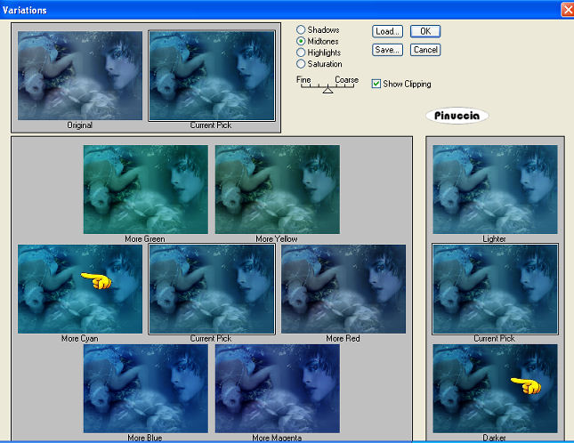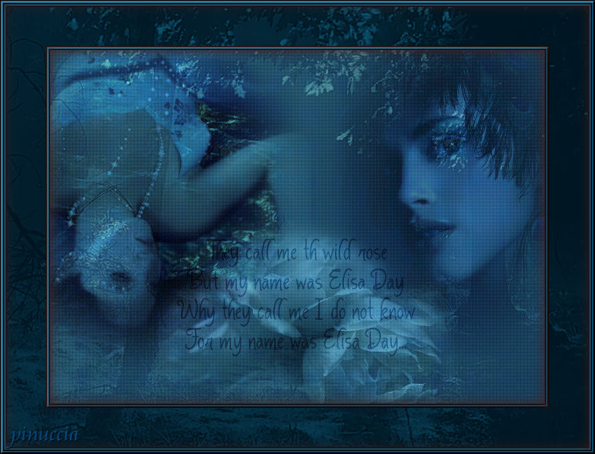 qui puoi trovare qualche risposta ai tuoi dubbi. Se l'argomento che ti interessa non è presente, ti prego di segnalarmelo. Occorrente: Materiale qui I tubes SS_520 e SS_527 di Suzi e il tube love_will_never_fade_away di Giada. Le maschere SKF_Mask37 e 20/20 (mettile nella cartella Maschere). Il Pennello TheWildRose (da importare in PSP). Sui Pennelli vedi qui Filtri: Adjust Variations Bordermania qui Penta.com qui A scelta una bella animazione. 1. Apri una nuova immagine trasparente 700 x 500 pixels. Imposta il colore di primo piano con #adc6c6 e riempi l'immagine con questo colore.Livelli>Nuovo livello raster. 2. Imposta il colore di sfondo con #10315a e riempi il nuovo livello con questo colore (ricorda che, trovandosi nella paletta del colore di sfondo, devi cliccare con il tasto destro del mouse).3. Livelli>Carica/Salva maschera>Carica maschera da disco. Cerca e carica la maschera Maske SKF_Mask37 ![]() Livelli>Unisci>Unisci gruppo. Nella paletta dei colori, abbassa l'opacità di questo livello al 75%. 4. Apri il tube SS_520 e vai a Modifica>Copia. Torna al tuo lavoro e vai a Modifica>Incolla>Incolla come nuovo livello. Spostalo sul lato destro.Livelli>Carica>Salva maschera>Carica maschera da disco. Cerca e carica la maschera 20/20. ![]() Livelli>Unisci>Unisci gruppo. 5. Nella paletta dei livelli cambia la modalità di miscelatura in Luce diffusa. ![]() 6. Apri il tube SS_527 e vai a Modifica>Copia. Torna al tuo lavoro e vai a Modifica>Incolla>Incolla come nuovo livello. Spostalo sul lato sinistro.Livelli>Carica/Salva Maschera>Carica maschera da disco. Cerca e carica la maschera 20-20. Livelli>unisci>Unisci gruppo. Nella paletta dei livelli cambia la modalità di miscelatura in Sovrapponi. ![]() 7. Apri il tube Giada_love_will_never_fade_away e vai a Modifica>Copia. Torna al tuo lavoro e vai a Modifica>Incolla>Incolla come nuovo livello. Immagine>Ridimensiona, del 75%, tutti i livelli non selezionato. ![]() Sposta i fiori in basso sul bordo.Nella paletta dei livelli cambia la modalità di miscelatura in Luminanza (esistente) e abbassa l'opacità al 60%. 8. Livelli>Unisci>Unisci tutto. 9. Effetti>Plugins>AdjustFilter ![]() Clicca una volta su More Cyan e una volta su Darker, e quindi ok. 10. Livelli>Nuovo livello raster. Riempi il nuovo livello con #0e5c88.Effetti>Plugins>Penta.com / Color Dot, con i settaggi standard. ![]() Nella paletta dei livelli cambia la modalità di miscelatura in Luce diffusa. Effetti>Effetti di bordo>Aumenta. Livelli>unisci>Unisci tutto. 11. Imposta il colore di primo piano con #001420. Attiva lo strumento Pennello ![]() Cerca il pennello TheWildRose e applicalo tra i tubes delle donne. Nella paletta dei livelli cambia la modalità di miscelatura in Luce diffusa. Livelli>Unisci>Unisci tutto. 12. Immagine>Aggiungi bordatura, 2 pixels, simmetriche, con il colore #001420. Immagine>Aggiungi bordatura, 2 pixels, simmetriche, con il colore #0f6283. Immagine>Aggiungi bordatura, 2 pixels, simmetriche, con il colore #001420. Selezione>Seleziona tutto. Selezione>Modifica>Contrai, di 6 pixels. Selezione>Inverti. Effetti>Plugins>Bordermania, Frame #2. ![]() 13. Selezione>Inverti. Effetti>Effetti 3D>Ritaglio. ![]() Selezione>Nessuna selezione. 14. Immagine>Aggiungi bordatura, 55 pixels, simmetriche, con il colore #0f6283. Seleziona il bordo con la bacchetta magica , tolleranza e sfumatura 0.Livelli>nuovo livello raster. Riempi con il colore #001420.Mantieni selezionato. Livelli>Carica/Salva maschera>Carica maschera da disco. Cerca e carica nuovamente la maschera Maske SKF_Mask37 con i settaggi precedenti. Livelli>unisci>Unisci gruppo. 15. Selezione>Inverti. Effetti>Effetti 3D>Ritaglio, con i settaggi precedenti. Selezione>Nessuna selezione. 16. Ripeti la bordatura dei 3 piccoli bordi da 2 pixels, in ordine inverso. Selezione>Seleziona tutto. Selezione>Modifica>Contrai di 6 pixels. Selezione>Inverti. Effetti>Plugins>Bordermania / Frame #2, con i settaggi precedenti. Selezione>Inverti. Effetti>Effetti 3D>Ritaglio, con i settaggi precedenti. 17. Non dimenticare il tuo watermark. Hai finito. Salva in formato jpg. ![]() Per l'animazione scegli un bel Floaties. In questo sito ne trovi di bellissimi. Per creare l'animazione. Apri Animation Shop. Apri l'animazione che hai scelto di utilizzare. Controlla di quanti fotogrammi è composta. Apri l'immagine che hai appena creato e salvato. Clicca sul fotogramma e vai a Modifica>Duplica. E ripeti fino ad ottenere lo stesso numero di fotogrammi dell'animazione. Riprendi l'animazione. Clicca sul primo fotogramma per selezionarlo e vai a Modifica>Seleziona tutto e quindi Modifica>Copia. Ritorna alla tua creazione. Clicca sul primo fotogramma per selezionarlo e vai a Modifica>Seleziona tutto e quindi Modifica>Incolla>Incolla nel fotogramma selezionato. Posiziona l'animazione e quando sei sicuro di aver trovato la posizione corretta rilascia il tasto del mouse. Se non sei soddisfatto puoi tornare indietro con Modifica>Annulla Incolla, e ripetere l'operazione. Per controllare il risultato clicca su Visualizza ![]() Quando sei soddisfatto, salva in formato gif. ![]() Se hai problemi o dubbi, o trovi un link non funzionante, o anche soltanto per un saluto, scrivimi. Settembre 2006 |