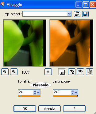 qui puoi trovare qualche risposta ai tuoi dubbi. Se l'argomento che ti interessa non è presente, ti prego di segnalarmelo. Occorrente: Materiale qui Nello zip trovate: 2 immagini, 2 maschere, 1 font. Metti le maschere nella cartella Maschere. Apri il font e minimizzalo. Lo troverai disponibile nella lista dei font, quando vorrai usare lo strumento Testo Filtri: Graphics Plus qui FM Tile Tools qui 1. Apri una nuova immagine trasparente 800 x 600 pixels. 2. Riempila con il nero (#000000).3. Apri l'immagine Wild1 e duplicala (shift+D). Mettila da parte la copia, per il momento. 4. Immagine>Ridimensiona, a 600 pixels di altezza. Livelli>Carica/Salva maschera>Carica maschera da disco, cerca e carica la maschera 20-20: ![]() Livelli>Unisci>Unisci gruppo. 5. Modifica>Copia. Torna al tuo lavoro e vai a Modifica>Incolla>Incolla come nuovo livello. Spostala sul lato destro dello sfondo nero:![]() 6. Attiva il livello dello sfondo nero. Attiva lo strumento Selezione , rettangolo,e traccia una selezione a metà dell'immagine: ![]() 7. Livelli>Nuovo livello raster. Apri l'immagine "Orchidee" e vai a Modifica>Copia. Torna al tuo lavoro e vai a Modifica>Incolla>Incolla nella selezione. Selezione>Nessuna selezione. Regola>Saturazione e tonalità>Viraggio: ![]() ![]() 8. Livelli>Carica/Salva maschera>Carica maschera da disco: cerca e carica la maschera sg_side_edge 3 (assicurati che sia attivo il livello dell'orchidea). ![]() Livelli>Unisci>Unisci gruppo. Abbassa l'opacità di questo livello al 50%. Effetti>Effetti di trama>Veneziana: ![]() ![]() 9. Attiva adesso la copia dell'immagine Wild1, che hai messo da parte al punto 3. Immagine>Rifletti. Con lo strumento Selezione rettangolo,seleziona una parte dell'occhio della donna di circa 185x140 pixels. Modifica>Copia. Torna al tuo lavoro e vai a Modifica>Incolla>Incolla come nuova immagine. Imposta il colore di primo piano con #fcb853, e il colore di sfondo con #800000. Passa il colore di primo piano a Gradiente con i seguenti settaggi: ![]() Immagine>Aggiungi bordatura, 10 pixels, simmetriche, con il colore bianco. Clicca nel bordo bianco con la bacchetta magica ![]() Riempi la selezione con il gradiente.Mantieni selezionato. Effetti>Plugins>Graphics Plus, Cross Shadow, con i settaggi standard: ![]() Ripeti l'Effetto Cross Shadow. Mantieni ancora selezionato. Effetti>Effetti di trama>Veneziana: ![]() Mantieni ancora selezionato. Effetti>Effetti 3D>Sfalsa ombra: ![]() Selezione>Nessuna selezione. ![]() Modifica>Copia. Torna all'immagine più grande e vai a Modifica>Incolla>Incolla come nuovo livello. Effetti>Effetti 3D>Sfalsa ombra: ![]() Ripeti l'Effetto Sfalsa ombra, ma cambiando verticale e orizzontale a -3. ![]() 10. Ritorna alla copia. Selezione>Nessuna selezione. Traccia adesso una selezione intorno alla bocca sempre di circa 185x140 pixels. Modifica>Copia e Modifica>Incolla>Incolla come nuova immagine. Ripeti i passaggi del passo 9: Immagine>Aggiungi bordatura, 10 pixels, simmetriche, con il colore bianco. Seleziona il bordo con la bacchetta magica ![]() e riempilo con il gradiente.Due volte: Effetti>Plugins>Graphics Plus - Cross Shadows, settaggi standard. Effetti>effetti di trama>Veneziana, con gli stessi settaggi. Effetti>Effetti 3D>Sfalsa ombra: ![]() Selezione>Nessuna selezione. ![]() Modifica>Copia. Torna all'immagine più grande e vai a Modifica>Incolla>Incolla come nuovo livello. Effetti>Effetti 3D>Sfalsa ombra: ![]() Ripeti l'Effetto Sfalsa ombra cambiando verticale e orizzontale a -3. ![]() 11. Attiva lo strumento Testo ![]() Io ho usato il font Blade Runner Movie Font, dimensione 36, alzando la scritta con i nodi vettori. Il settaggio della dimensione dipende dal testo e dalla versione di PSP che stai usando. Per curiosità ecco un piccolo esempio di come varia la stessa dimensione da una versione all'altra, con lo stesso carattere (Arial Black). ![]() Chiudi il colore di primo piano e imposta il colore di sfondo sul bianco. Scrivi il tuo testo in basso a sinistra del blend. Livelli>Converti in livello raster. 12. Seleziona l'interno del testo con la Bacchetta magica ![]() Attiva l'immagine Wild1. Se è ancora selezionata la parte della bocca vai a Selezione>Nessuna selezione. Modifica>Copia. Torna al tuo lavoro e vai a Modifica>Incolla>Incolla nella selezione. Mantieni selezionato. Effetti>Effetti 3D>sfalsa ombra: ![]() Ripeti l'Effetto Sfalsa ombra, cambiando verticale e orizzontale a -3. Selezione>Nessuna selezione. Livelli>Unisci>Unisci tutto. 13. Effetti>Plugins>FM Tile Tools - Blend Emboss, con i settaggi standard. ![]() 14. Livelli>Nuovo livello raster. Selezione>Seleziona tutto. Riempi con il gradiente.Selezione>Modifica>Contrai, di 7 pixels. Premi sulla tastiera il tasto CANC. Selezione>Inverti. Effetti>Plugins>Cross Shadow, con i settaggi standard. Ripeti l'Effetto Cross Shadow. Effetti>Effetti di Trama>Veneziana, con i settaggi del passo 9. Effetti>Effetti 3D>Sfalsa ombra, con i settaggi del passo 12. Selezione>Nessuna selezione. Livelli>Unisci>Unisci tutto. Non dimenticare la firma o il watermark. Salva in formato jpg. ![]() Se hai problemi o dubbi, o trovi un link non funzionante, o anche soltanto per un saluto, scrivimi. Gennaio 2007 |