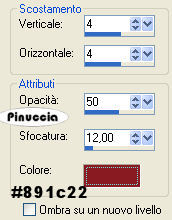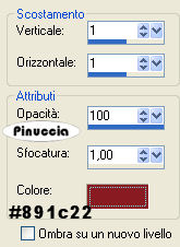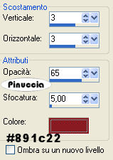 qui puoi trovare qualche risposta ai tuoi dubbi. Se l'argomento che ti interessa non è presente, ti prego di segnalarmelo. Occorrente: Materiale qui Filtri: Factory Gallery G qui Graphics Plus - Cross Shadow qui FM Tile Tools - Blend Emboss qui I filtri Factory Gallery, per essere usati, devono prima essere convertiti. Come fare vedi qui Apri il font e minimizzalo nella tua area di lavoro. Lo troverai nella lista dei font disponibili, quando userai lo strumento Testo. Metti il Pennello nella cartella dei Pennelli. Apri il motivo oro Goldfill1 e minimizzalo nella tua area di lavoro. Lo troverai nella lista dei motivi disponibili, quando ti servirà. 1. Apri una nuova immagine trasparente 700 x 450 pixels. Riempila con #be696e.2. Selezione>Seleziona tutto. Livelli>Nuovo livello raster. Selezione>Modifica>Contrai di 45 pixels. Selezione>Inverti. Livelli>Nuovo livello raster. Riempi con #be696e.Effetti>Plugins>Factory Gallery G - Fractal Magic 6: ![]() Cambia la modalità di miscelatura di questo livello in Luminanza (esistente). Selezione>Nessuna selezione. ![]() 3. Apri il tube She. Immagine>Ridimensiona, a 360 pixels di altezza. Modifica>Copia. Torna al tuo lavoro e vai a Modifica>Incolla>Incolla come nuovo livello. Sposta il tube a sinistra.Cambia la modalità di miscelatura di questo livello in Moltiplica. ![]() 4. Attiva il livello inferiore e clicca con la bacchetta magica al centro.Livelli>Nuovo livello raster. Apri il tube New House e vai a Modifica>Copia. Torna al tuo lavoro e vai a Modifica>Incolla>Incolla nella selezione. Cambia la modalità di miscelatura di questo livello in Luminanza (esistente) e abbassa l'opacità di questo livello al 66%. Attiva lo strumento Gomma ,e cancella dal viso della donna i segni del tube New House: assicurati di essere posizionato sul livello del tube New House. ![]() 5. Mantieni selezionato. Selezione>Inverti. Effetti>Effetti 3D>Sfalsa ombra: ![]() Ripeti l'Effetto Sfalsa ombra, ma cambiando verticale e orizzontale a -3. 6. Selezione>Nessuna selezione. Apri il tube Butt1 e vai a Modifica>Copia. Torna al tuo lavoro e vai a Modifica>Incolla>Incolla come nuovo livello. Attiva lo strumento Deformazione ![]() Puntatore se stai usando PSP Xe ruota la farfallea in modo che si trovi in diagonale nell'angolo superiore destro. Effetti>Effetti 3D>Sfalsa ombra: ![]() Ripeti l'Effetto Sfalsa ombra, ma cambiando verticale e orizzontale a -4. Livelli>Duplica. Immagine>Rifletti. Livelli>Duplica. Immagine>Capovolgi. Livelli>Duplica. Immagine>Rifletti. Adesso avrai una farfalla in ogni angolo. ![]() 7. Livelli>Unisci>Unisci visibile. Apri il tube Dancer. Immagine>Ridimensiona, decidi tu la misura per adattare il tube alla tag. Modifica>Copia. Torna al tuo lavoro e vai a Modifica>Incolla>Incolla come nuovo livello. Sposta il tube nell'angolo in basso a destra.Cambia la modalità di miscelatura di questo livello in Luminanza (esistente). 8. Livelli>Nuovo livello raster. Imposta il colore di primo piano su Motivi e seleziona il motivo oro Goldfill1. Attiva lo strumento Pennello ![]() cerca e seleziona il Pennello Memories Stay, dimensione 250, e applicalo con il motivo oro accanto alla testa della ragazza. se hai problemi sui pennelli, vedi qui alcuni appunti. Effetti>Effetti 3D>Sfalsa ombra: ![]() Livelli>Unisci>Unisci visibile. ![]() 9. Attiva lo strumento Testo ,io ho usato CommercialScript BT, dimensione 48, corsivo. Imposta il colore di sfondo con il motivo oro e chiudi il colore di primo piano. Scrivi il tuo nome. Livelli>Converti in livello raster. Effetti>Effetti 3D>SFalsa ombra, con i settaggi usati al punto 8. Ripeti l'Effetto Sfalsa ombra. 10. Livelli>Unisci>Unisci tutto. Immagine>Aggiungi bordatura, 2 pixels, simmetriche, con il colore #891c22. Immagine>Aggiungi bordatura, 4 pixels, simmetriche, con il bianco. Seleziona il bordo con la bacchetta magica ![]() e riempilo con il motivo oro.Selezione>Nessuna selezione. Effetti>Plugins>Graphics Plus - Cross Shadow, con i settaggi standard. ![]() Immagine>Aggiungi bordatura, 2 pixels, simmetriche, con il colore #891c22. 11. Effetti>Plugins>FM Tile Tools - Blend Emboss, con i settaggi standard. ![]() Aggiungi il tuo watermark, se vuoi, e salva in formato jpg. 12. Immagine>Ridimensiona, a 580 pixels di larghezza, e salva in formato jpg. ![]() Se hai problemi o dubbi, o trovi un link non funzionante, o anche soltanto per un saluto, scrivimi. 3 Aprile 2007 |