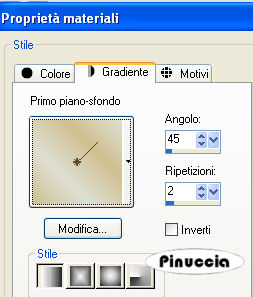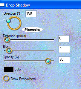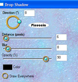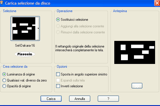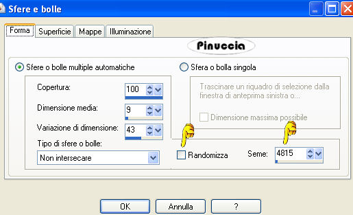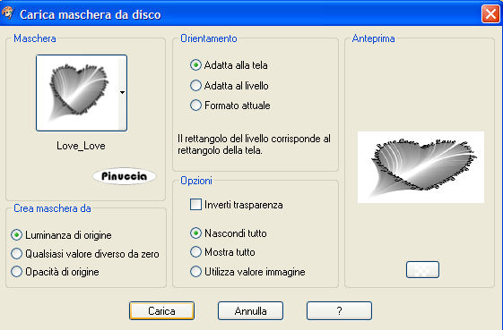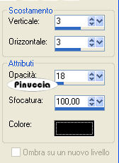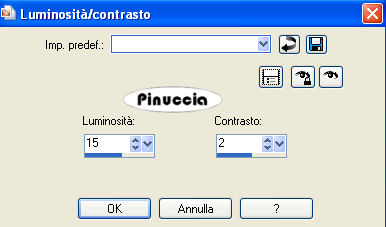 qui puoi trovare qualche risposta ai tuoi dubbi. Se l'argomento che ti interessa non è presente, ti prego di segnalarmelo. Occorrente: Un tube e 3 pennelli a scelta. Il resto del materiale qui Per il mio esempio ho usato un tube di Angie. Metti la selezione nella cartella Selezioni. Metti la maschera nella cartella Maschere. Filtri: Penta.com - Color dot qui Eye Candy 3.1 qui Ti servirà anche Animation Shop qui 1. Apri una nuova immagine trasparente 790 x 450 pixels. 2. Scegli due colori predominanti del tuo tube e con questi colori crea un gradiente lineare, con i seguenti settaggi: ![]() 3. Livelli>Nuovo livello raster. Selezione>Carica/Salva selezione>Carica selezione da disco. Cerca e carica la selezione Sel-Dakara-16: ![]() Riempi la selezione con un colore abbinato al tuo tube.4. Effetti>Effetti 3D>Sfalsa ombra, con i seguenti settaggi, colore nero: ![]() 5. Ripeti l'Effetto Sfalsa ombra, ma cambiando verticale e orizzontale con -3. Selezione>Deseleziona. 6. Chiudi questo livello. 7. Livelli>Nuovo livello raster. Riempi il livello con il gradiente del punto 2.8. Livelli>Carica/Salva maschera>Carica maschera da disco. Cerca e carica la maschera Love_Love. ![]() Livelli>Elimina, e rispondi sì alla domanda unire la maschera nel livello corrente: ![]() Livelli>Unisci>Unisci gruppo. 9. Livelli>Visualizza>Tutto. 10. Attiva il livello inferiore di sfondo. Effetti>Plugins>Penta.com - Color Dot, con i settaggi standard. ![]() 11. Attiva il secondo livello (il livello al centro). Effetti>Plugins>Eye Candy 3 - Drop Shadow, con i seguenti settaggi: ![]() 12. Attiva il terzo livello (il livello con il cuore). Effetti>Plugins>Eye Candy 3 - Drop Shadow, con i settaggi precedenti, ma cambiando il colore con il bianco. ![]() 13. Di nuovo Effetti>Plugins>Eye Candy 3 - Drop Shadow, con i seguenti settaggi, colore nero: ![]() Regola>Messa a fuoco>Metti a fuoco (a seconda della scelta del colore, ripeti una seconda volta). 14. Apri il tuo tube e vai a Modifica>Copia. Torna al tuo lavoro e vai a Modifica>Incolla come nuovo livello. Sposta il tube a sinistra.15. Livelli>Nuovo livello raster. Attiva lo strumento Pennello ![]() scegli tre pennelli e applicali sull'immagine con un colore abbinato al tuo tube. (un pennello al centro, uno in alto a destra e uno in basso a destra). Ti ricordo che i tre pennelli devono trovarsi sullo stesso livello. 16. Effetti>Plugins>Eye Candy 3 - Drop Shadow, con i seguenti settaggi, colore nero: ![]() 17. Livelli>Nuovo livello raster. Aggiungi la tua firma al lavoro. Duplica l'immagine, usando sulla tastiera la combinazione di tasti Shift(maiuscola)+D. Dovrai lavorare su entrambe le creazioni. Pertanto per non confonderti, ti consiglio di salvarle (in formato .psp), nominandole: Prima immagine e Seconda immagine. 18. Su quest'ultima, attiva il livello dei pennelli. Regola>Luminosità e contrasto>Luminosità e contrasto. ![]() 19. Livelli>Unisci>Unisci tutto (appiattisci). 20. Attiva la prima immagine. Livelli>Unisci>Unisci tutto (appiattisci). Tutto quello che segue deve essere fatto sistematicamente allo stesso modo sulle due immagini. 21. Immagine>Aggiungi bordatura, 2 pixels, simmetriche, con il colore nero. Immagine>Aggiungi bordatura, 20 pixels, simmetriche, con il colore bianco. 22. Seleziona il bordo bianco con la bacchetta magica ![]() e riempilo con il gradiente del punto 2.(non dimenticare di fare gli stessi passaggi sulla seconda immagine). Mantieni selezionato. 23. Sulla prima immagine: Effetti>Effetti artistici>Sfere e bolle, con i seguenti settaggi, randomizza non selezionato. ![]() 24. Sulla seconda immagine: Effetti>Effetti artistici>Sfere e bolle, con gli stessi settaggi, ma cambiando l'impostazione del Seme: ![]() Selezione>Deseleziona (entrambe le immagini). 25. Immagine>Aggiungi bordatura, 2 pixels, simmetriche, con il colore nero. Immagine>Aggiungi bordatura, 2 pixels, simmetriche, con il colore scelto per i pennelli. Immagine>Aggiungi bordatura, 2 pixels, simmetriche, con il colore nero. Immagine>Aggiungi bordatura, 15 pixels, simmetriche, con il colore bianco. 26. Seleziona quest'ultimo bordo con la bacchetta magica ![]() e riempilo con il gradiente del punto 2.(Non dimenticare di rifare allo stesso modo sull'altra immagine). Mantieni selezionato. 27. Ripeti il punto 23 sulla prima immagine. 28. Ripeti il punto 24 sulla seconda immagine. 29. Selezione>Deseleziona. 30. Immagine>Aggiungi bordatura, 2 pixels, simmetriche, con il colore nero. Immagine>Aggiungi bordatura, 2 pixels, simmetriche, con il colore scelto per i pennelli. Immagine>Aggiungi bordatura, 2 pixels, simmetriche, con il colore nero. 31. Copia la prima immagine: Modifica>Copia. Apri Animation Shop. Clicca con il tasto destro del mouse sullo spazio vuoto e Incolla come nuova animazione. 32. Torna in PSP. Copia la seconda immagine: Modifica>Copia. Torna in Animation Shop e vai a Modifica>Incolla>Incolla dopo il fotogramma corrente. Ed ecco la tua animazione composta da due fotogrammi. 33. Controlla il risultato, cliccando su Visualizza ![]() Se ti sembra troppo veloce, cambia la velocità. Nel mio esempio ho impostato il primo fotogramma a 12 e il secondo a 10. Quando sei soddisfatto, salva in formato gif. ![]() Se hai problemi o dubbi, o trovi un link non funzionante, o anche soltanto per un saluto, scrivimi 2 Giugno 2008 |