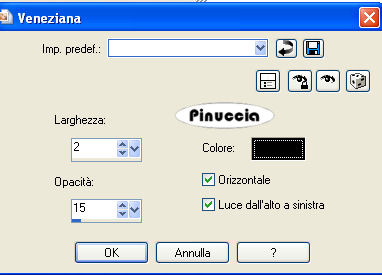 qui puoi trovare qualche risposta ai tuoi dubbi. Se l'argomento che ti interessa non è presente, ti prego di segnalarmelo. Occorrente: Materiale qui Il tube è di Thaiss. I tubes "Decor" sono di Dakara. (per favore non cambiare il nome dei files). Ti servirà anche Animation Shop qui 1. Apri una nuova immagine trasparente 450 x 500 pixels. 2. Apri il tuo tube o quello fornito con il materiale e vai a Modifica>Copia. Torna al tuo lavoro e vai a Modifica>Incolla come nuovo livello. 3. Effetti>Effetti di trama>Veneziana, con i seguenti settaggi, colore nero: ![]() 4. Apri il tube Décor 2_Dakara e vai a Modifica>Copia. Torna al tuo lavoro e vai a Modifica>Incolla come nuovo livello. Nella paletta dei livelli trascina il livello in fondo. 5. Apri il tube Décor 3_Dakara e vai a Modifica>Copia. Torna al tuo lavoro e vai a Modifica>Incolla come nuovo livello. Nella paletta dei livelli trascina il livello in fondo. 6. Livelli>Unisci>Unisci tutto (appiattisci). Immagine>Ridimensiona, all'80%, tutti i livelli selezionato. Regola>Messa a fuoco>Metti a fuoco. 7. Immagine>Aggiungi bordatura, 2 pixels, simmetriche, con il colore nero. Modifica>Copia. 8. Apri una nuova immagine trasparente 700 x 510, e riempila con il colore bianco.Modifica>Incolla come nuovo livello. Posiziona l'immagine a destra.9. Livelli>Duplica. Immagine>Ruota per gradi - 22 gradi a sinistra: ![]() Sposta la seconda immagine a sinistra,i bordi devono toccare leggermente i bordi della tag. ![]() 10. Effetti>Effetti 3D>Sfalsa ombra, con i seguenti settaggi, colore nero: ![]() 11. Livelli>Nuovo livello raster. Attiva lo strumento Testo e scegli un font molto grande.Io ho usato il font Capsule, dimensione 72. Scrivi il tuo nome con il colore di sfondo impostato con il nero. 12. Effetti>Effetti 3D>Sfalsa ombra, con i seguenti settaggi, colore nero: ![]() 13. Apri il tube Décor 5_Dakara e vai a Modifica>Copia. Torna al tuo lavoro e vai a Modifica>Incolla come nuovo livello. Sposta il cuore in alto a sinistra.14. Livelli>Duplica. Sposta il secondo cuore a destra, vedi l'esempio finale.15. Chiudi il livello della firma e posizionati sul livello di sfondo. Livelli>Unisci>Unisci visibile, e rinomina questo livello Sfondo. 16. Chiudi il livello Sfondo e riapri il livello della firma. 17. Livelli>Duplica, e ripeti 2 volte. Avrai così quattro livelli della firma. 18. Partendo dall'alto, lascia l'opacità del primo livello a 100. Sul secondo livello abbassa l'opacità a 70. Sul terzo livello abbassa l'opacità a 40. Sul quarto livello abbassa l'opacità a 10. ![]() 19. Posizionati sul livello Sfondo e vai a Modifica>Copia. 20. Apri Animation Shop e vai a Modifica>Incolla>Incolla come nuova animazione. 21. Modifica>Duplica e ripeti finchè non avrai 4 fotogrammi. Clicca sul primo fotogramma e vai a Modifica>Seleziona tutto. 22. Torna in PSP. Attiva il primo dei quattro livelli della firma e vai a Modifica>Copia. Torna in Animation Shop e vai a Modifica>Incolla>Incolla come nuova animazione. 23. Ritorna in PSP e, uno alla volta, copia i tre livelli rimasti della firma, e, in Animation Shop: Modifica>Incolla>incolla dopo il fotogramma corrente. Quanto hai completato l'animazione della firma con i quattro fotogrammi, clicca sul primo fotogramma per selezionarlo e vai a Modifica>Seleziona tutto, poi Modifica>Copia. Attiva l'animazione principale dello sfondo e vai a Modifica>Incolla>Incolla nel fotogramma selezionato. Posiziona il testo e, quando sei certo della posizione, rilascia il tasto del mouse. Modifica>Proprietà fotogramma, e imposta la velocità a 50. ![]() 24. Controlla il risultato cliccando su Visualizza e salva in formato gif.![]() Se hai problemi o dubbi, o trovi un link non funzionante, o anche soltanto per un saluto, scrivimi 2 Giugno 2008 |