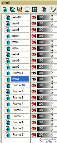 Nella paletta dei livelli clicca con il tasto destro del mouse sul livello del testo e duplicalo 9 volte