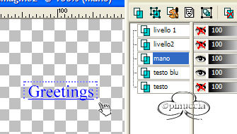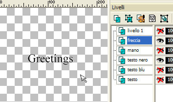 Nella paletta dei livelli la freccia dovrà essere in alto, la mano sotto la freccia,