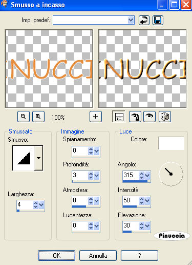 Ricorda di applicare ad ogni lettera l'Effetto Smusso a incasso.