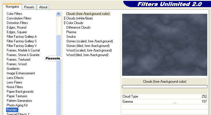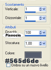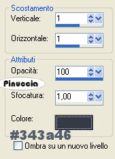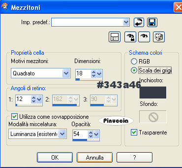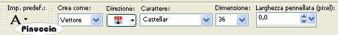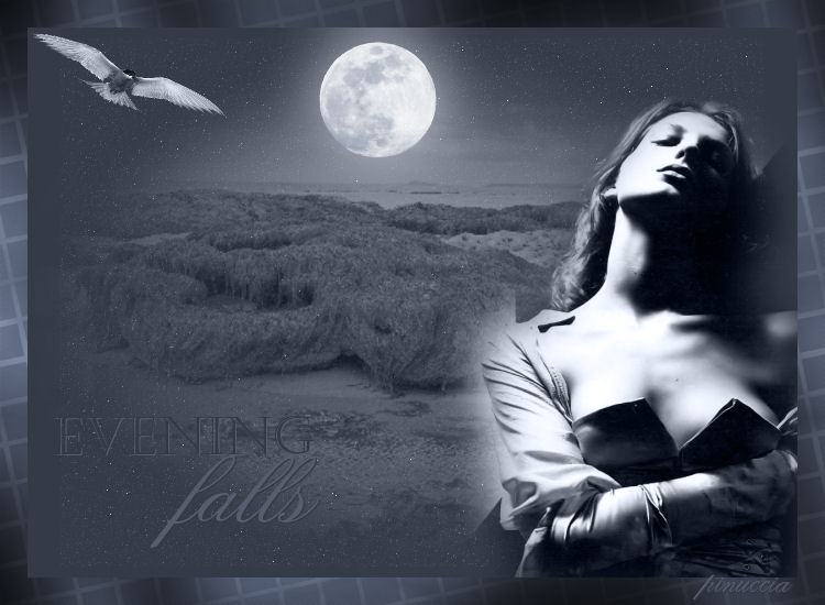 qui puoi trovare qualche risposta ai tuoi dubbi. Se l'argomento che ti interessa non è presente, ti prego di segnalarmelo. Questo tutorial è stato scritto e tradotto con PSP 9. Questo tutorial è stato scritto e tradotto con PSP 9. Occorrente: Materiale qui Filtri: Filters Unlimited 2 - Render qui Graphics Plus qui Apri il font e minimizzalo nella tua area di lavoro. Lo troverai nella lista dei font disponibili, quando ti servirà. 1. Imposta il colore di primo piano con #565d6d, e il colore di sfondo con #343a46. 2. Apri una nuova immagine trasparente 640 x 480 pixels. 3. Riempi l'immagine trasparente con il colore di sfondo.per riempire con il colore di sfondo, devi cliccare con il tasto destro del mouse 4. Apri il tube krw-starfield e vai a Modifica>Copia. 5. Torna al tuo lavoro e vai a Modifica>Incolla>Incolla come nuovo livello. 6. Livelli>nuovo livello raster. 7. Selezione>Seleziona tutto. 8. Apri il mist krw-seatones e vai a Modifica>Copia. 9. Torna al tuo lavoro e vai a Modifica>Incolla>Incolla nella selezione. 10. Selezione>Nessuna selezione. 11. Cambia la modalità di miscelatura di questo livello in Luminanza (esistente) e abbassa l'opacità al 54%. ![]() 12. Apri il mist krw-female145 e vai a Modifica>Copia. Torna al tuo lavoro e vai a Modifica>Incolla>Incolla come nuovo livello. 14. Immagine>Rifletti. 15. Sposta il tube nell'angolo in basso a destra,vedi il mio esempio. 16. Cambia la modalità di miscelatura di questo livello in Luminanza (esistente). 17. Apri il tube krw-seagull e vai a Modifica>Copia. 18. Torna al tuo lavoro e vai a Modifica>Incolla>Incolla come nuovo livello. 19. Immagine>Ridimensiona, al 55%, mantieni proporzioni selezionato, tutti i livelli non selezionato. ![]() 20. Sposta il tube nell'angolo in alto a sinistra.21. Cambia la modalità di miscelatura di questo livello in Luminanza (esistente). 22. Apri il tube krw-fullmoon50 e vai a Modifica>Copia. 23. Torna al tuo lavoro e vai a Modifica>Incolla>Incolla come nuovo livello. 24. Immagine>Ridimensiona, al 55%, mantieni proporzioni selezionato, tutti i livelli non selezionato. 25. Cambia la modalità di miscelatura di questo livello in Luminanza (esistente). 26. Posiziona il tube in alto al centro.27. Livelli>Duplica. 28. Attiva il livello originale della luna. 29. Regola>Sfocatura>Sfocatura gaussiana, raggio 30. ![]() 30. Abbassa l'opacità di questeo livello al 98%. 31. Attiva il livello della copia e cambia la modalità di miscelatura in Normale. 32. Regola>Saturazione e tonalità>Viraggio: ![]() 33. Livelli>Unisci>Unisci tutto (appiattisci). 34. Immagine>Aggiungi bordatura, 25 pixels, simmetriche, con il colore bianco. 35. Seleziona il bordo con la bacchetta magica ![]() 36. Effetti>Plugins>Filters Unlimited 2 - Render - Clouds (fore-/background color) 252,157: ![]() 37. Effetti>Effetti artistici>Mezzitoni: ![]() 38. Effetti>Plugins>Graphics Plus - Cross Shadow, con i settaggi standard. ![]() 39. Selezione>Nessuna selezione. 40. Attiva lo strumento Testo , crea come vettore,font Castellar, dimensione 36, pennellata 0: ![]() 41. Scrivi "evening" (il font è tutto in lettere maiuscole). 42. Sposta il testo in basso a sinistra. 43. Livelli>Converti in livello raster. 44. Effetti>Effetti 3D>Sfalsa ombra, con i seguenti settaggi, colore #565d6d. ![]() 45. Passa il colore di primo piano a colore di sfondo, cliccando sulla freccia arrotondata tra le due palette dei materiali: ![]() 46. Seleziona il font Flemish Script AT, dimensione 72, pennellata 0: ![]() 47. Scrivi "falls". 48. Sposta il testo sotto la scritta Evening. 49. Livelli>Converti in livello raster. 50. Effetti>Effetti 3D>Sfalsa ombra, con i seguenti settaggi, colore #343a46. ![]() 51. Aggiungi la tua firma, se vuoi. 52. Livelli>Unisci>Unisci tutto (appiattisci). ![]() 53. Livelli>Duplica, 2 volte. 54. Imposta il colore di primo piano con #fdfdfd. 55. Attiva lo strumento Pennello , con i seguenti settaggi:![]() 56. Sul livello superiore, clicca una volta su 3 o 4 stelle dell'immagine. 57. Chiudi questo livello e ripeti il passo 56 sul livello successivo. 58. Attiva tutti i livelli e salva in formato psp. 59. Apri Animation Shop. Apri il file che hai appena salvato. 60. Clicca sul primo fotogramma per selezionarlo e vai a Modifica>Seleziona tutto. 61. Animazione>proprietà fotogramma, e imposta la velocità a 30. ![]() 62. Clicca sul fotogramma 2. Animazione>proprietà fotogramma, e imposta la velocità a 15. ![]() 63. Salva in formato gif. ![]() Se hai problemi o dubbi, o trovi un link non funzionante, o anche soltanto per un saluto, scrivimi. 14 Maggio 2007 |