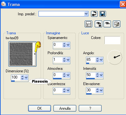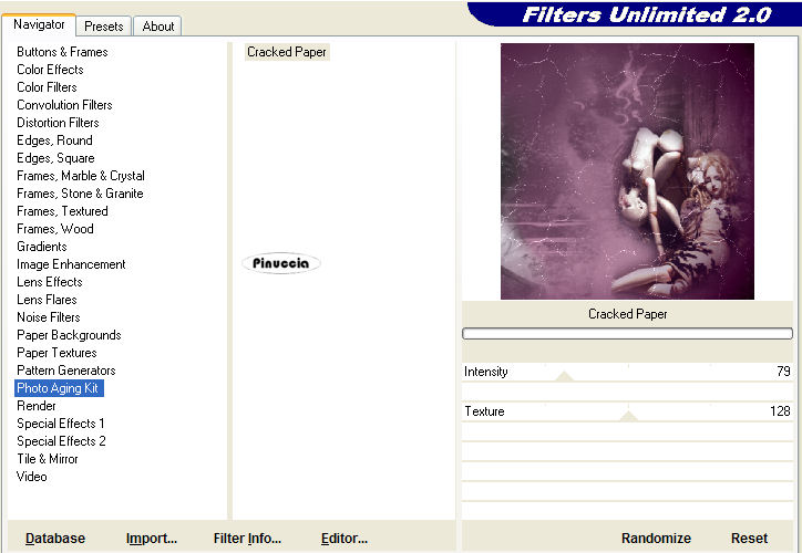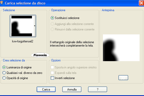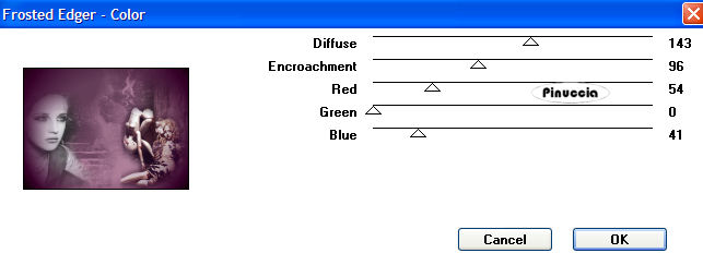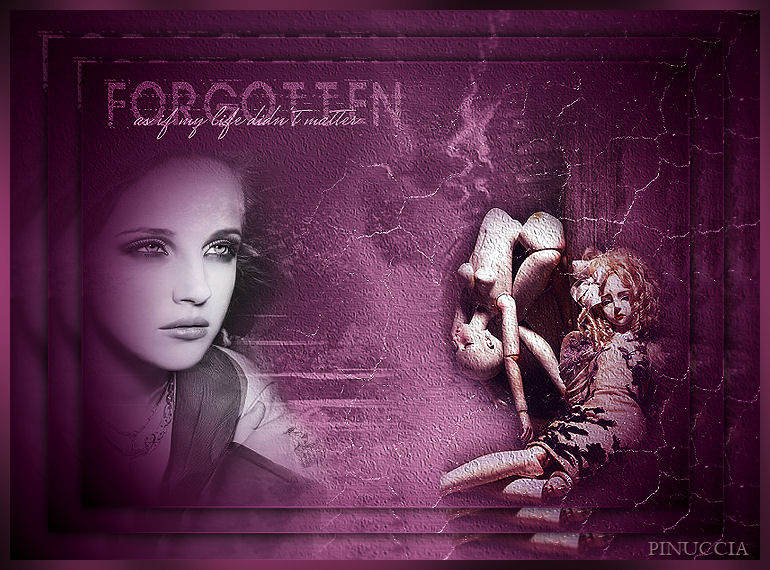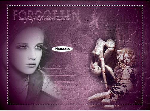 qui puoi trovare qualche risposta ai tuoi dubbi. Se l'argomento che ti interessa non è presente, ti prego di segnalarmelo. Questo tutorial è stato scritto e tradotto con PSP 9. Occorrente: Materiale qui Filtri: Filters Unlimited 2.0 qui Photo Aging Kit qui Per usare Photo Aging Kit occorre importarlo nel Filters Unlimited. come fare vedi qui Greg's Factory Output vol. 2 qui Alien Skin Exposure qui David Blend filters qui nella lista dei filtri, il filtro David Blend si trova sotto la lettera P, con la denominazione Photo Tools Metti la maschera, la trama e le selezioni nelle rispettive cartelle. Apri i font in PSP e minimizzali nella tua area di lavoro. Li troverai nella lista dei font disponibili, quandi ti serviranno. 1. Apri una nuova immagine trasparente 750 x 550 pixels. 2. Imposta il colore di primo piano con #643e58, e il colore di sfondo con #906677. 3. Riempi l'immagine trasparente con il colore di primo piano.4. Livelli>Nuovo livello raster. 5. Riempi il nuovo livello con il colore di sfondo.per riempire con il colore di sfondo, devi cliccare con il tasto destro del mouse. 6. Livelli>Carica/Salva maschera>Carica maschera da disco. Cerca e carica la maschera krw-grunge1 mask. ![]() 7. Livelli>Unisci>Unisci gruppo. 8. Cambia la modalità di miscelatura di questo livello in Filtra, e abbassa l'opacità all'85%. 9. Livelli>Unisci>Unisci visibile. 10. Apri il tube "krw-female122 mist", e vai a Modifica>Copia. 11. torna al tuo lavoro e vai a Modifica>Incolla>Incolla come nuovo livello. Sposta il tube nell'angolo in basso a sinistra.12. Apri il tube "krw-architecture21 mist", e vai a Modifica>Copia. 13. Torna al tuo lavoro e vai a Modifica>Incolla>Incolla come nuovo livello. 14. Immagine>Rifletti. 15. Spostalo contro il bordo destro,in modo che l'area chiara a destra del tube non sia visibile. ![]() ![]() 16. Apri il tube "krw-forgotten mist", e vai a Modifica>Copia. 17. Torna al tuo lavoro e vai a Modifica>Incolla>Incolla come nuovo livello. 18. Immagine>Ridimensiona, al 90%, mantieni proporzioni selezionato, tutti i livelli non selezionato. ![]() 19. Regola>Messa a fuoco>Metti a fuoco. 20. Sposta il tube nell'angolo in basso a destra.21. Livelli>Unisci>Unisci visibile. 22. Effetti>Plugins>Photo tools - Frosted edger color, con i seguenti settaggi: ![]() 23. Selezione>Carica/Salva selezione>Carica selezione da disco. Cerca e carica la selezione krw-forgottensel. ![]() 24. Effetti>Plugins>Filters Unlimited 2 - Photo Aging Kit - Craked paper: 79,128. ![]() 25. Selezione>nessuna selezione. 26. Attiva lo strumento testo , crea come vettore,font Tom Violence, dimensione 48, pennellata 0, allineamento centrale. ![]() 27. Scrivi "FORGOTTEN", tutto in lettere maiuscole. 28. Posiziona il testo nell'angolo in alto a sinistra. 29. Livelli>Converti in livello raster. 30. Cambia la modalità di miscelatura in Filtra, e abbassa l'opacità al 46%. 31. Regola>Aggiungi/Rimuovi disturbo/Aggiungi disturbo, gaussiano, 30 monocromatico. ![]() 32. Attiva nuovamente lo strumento Testo ,crea come vettore, font Mrs.Saint-Delafield, dimensione 30, pennellata 0, allineamento centrale. ![]() 33. Scrivi "as if my life didn't matter", tutto in lettere minuscole. 34. Posiziona il testo contro il bordo inferiore del testo precedente. 35. Cambia la modalità di miscelatura di questo livello in Filtra. 36. Livelli>Unisci>Unisci tutto (appiattisci). 37. Selezione>Carica/Salva selezione>Carica selezione da disco. Cerca e carica la selezione krw-forgottensel2. ![]() 38. Effetti>Effetti di trama>Trama. Apri il menu a fianco del box, cerca e seleziona la trama tw-tex0-9, con i seguenti settaggi: ![]() 39. Selezione>Nessuna selezione. 40. Livelli>Duplica. 41. Immagine>Ridimensiona, al 90%, tutti i livelli non selezionato, mantieni proporzioni selezionato: ![]() 42. Regola>Messa a fuoco>Metti a fuoco. 43. Attiva lo strumento Selezione , rettangolo,e traccia una selezione intorno a questo livello ridimensionato. ![]() 44. Effetti>Effetti 3D>Sfalsa ombra, con i seguenti settaggi, colore nero: ![]() 45. Selezione>Nessuna selezione. 46. Livelli>Duplica. 47. Immagine>Ridimensiona, al 90%, tutti i livelli non selezionato, mantieni proporzioni selezionato. 48. Regola>Messa a fuoco>Metti a fuoco. 49. Livelli>Unisci>Unisci visibile. 50. Effetti>Plugins>Alien Skin Exposure - Color Film: Film-Kodak-Kodachrome 25(grain off). ![]() 51. Immagine>Aggiungi bordatura, 10 pixels simmetriche, con il colore bianco. 52. Seleziona questo bordo con la bacchetta magica ![]() ![]() Imposta il colore di primo piano con il colore #5d2443, e riempi il bordo con questo colore.53. Effetti>Plugins>Greg's Factory Output vol. 2 - Pools Shadow: ![]() 54, Aggiungi la firma se vuoi. Livelli>Unisci>Unisci tutto (appiattisci) e salva in formato jpg. ![]() ![]() Se hai problemi o dubbi, o trovi un link non funzionante, o anche soltanto per un saluto, scrivimi. 6 Luglio 2007 |