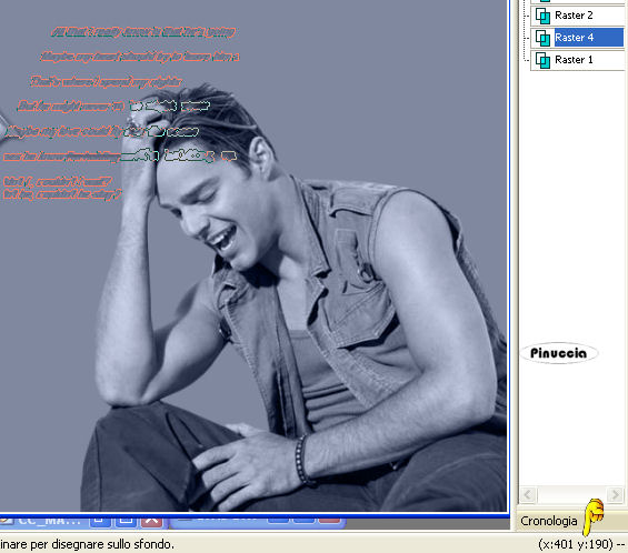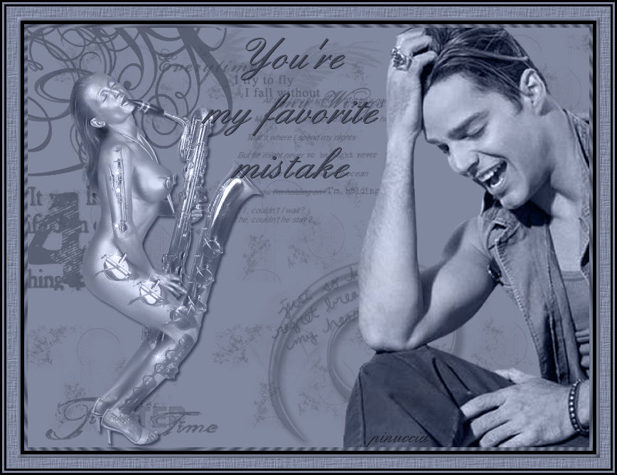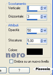 qui puoi trovare qualche risposta ai tuoi dubbi. Se l'argomento che ti interessa non è presente, ti prego di segnalarmelo. Questo tutorial è stato creato con PSP 9. Occorrente: il tube di una donna e il tube di un uomo. Tutto il resto del materiale qui Importa i pennelli nella cartella Pennelli di PSP. se il tuo programma non ti rende disponibili i pennelli (come è successo a me) apri i pennelli in PSP ed esportali. Per seguire il procedimento vai qui (consiglio n. 9). 1. Imposta il colore di primo piano su #42485a e il colore di sfondo su #80889f. 2. Apri una nuova immagine trasparente 800 x 600 pixels e riempila con il colore di sfondo.3. Apri il tube della donna e vai a Modifica>Copia. 4. Torna al tuo lavoro e vai a Modifica>Incolla>Incolla come nuovo livello. Spostalo sul lato sinistro.5. Nella paletta dei livelli cambia la modalità di miscelatura in Luminanza (Esistente). 6. Effetti>Effetti 3D>Sfalsa ombra, con i seguenti settaggi, colore nero: ![]() 7. Apri il tube dell'uomo e vai a Modifica>Copia. 8. Torna al tuo lavoro e vai a Modifica>Incolla>Incolla come nuovo livello. Spostalo sul lato destro.9. Nella paletta dei livelli cambia la modalità di miscelatura in Luminanza (esistente). 10. Posizionati sul livello di sfondo. 11. Livelli>Nuovo livello raster. 12. Attiva lo strumento Pennello ![]() e cerca il pennello !aRavenBrush!-a05-pak1-stevie brush. 13. Muovendo il cursore sulla tela sulla barra inferiore appariranno i valori relativi alla posizione del mouse. Quando il cursore si trova sulla posizione indicata da X=401 e Y=190, clicca una volta con il tasto sinistro del mouse. ![]() 14. Seleziona il pennello: Aged photo xqx_Brush001. 15. Sempre cliccando con il tasto sinistro del mouse, applicalo attorno alla donna, all'uomo e al testo. 16.Seleziona il pennello CrisTaylor_54. 17. Con il cursore a X:478, Y:450, clicca due volte. ![]() 18. Seleziona il pennello GlamurGr1DeZines_OnlyTime2 001. 19. Con il cursore a X:155, Y:552 clicca una volta con il tasto sinistro del mouse. ![]() 20. Seleziona il pennello GlamurGr1DeZines_OnlyTime2 011. 21. Con il cursore a X:69, Y:296, clicca una volta. 22. Seleziona il pennello SJwant8. 23. Con il cursore a X:425, Y:408, clicca una volta. 24. Seleziona il pennello !misc.lyrics3-sd05. 25. Con il cursore a X:348, Y:76, clicca una volta. 26. Seleziona il pennello gh_swirlybrush-001. 27. Applica il pennello contro il bordo nell'angolo superiore sinistro, cliccando una volta. 28. Nella paletta dei livelli inverti i colori di primo piano e sfondo, cliccando sulla doppia freccia arrotondata fra le palette dei colori. ![]() 29. Attiva lo strumento Testo ![]() e scegli il font EnglischeScht, dimensione 48. 30. Scrivi: You're my favorite mistake (vedi esempio) 31. Effetti>Effetti 3D>Sfalsa ombra, con i seguenti settaggi, colore nero. ![]() 32. Aggiungi la tua firma con lo stesso font, dimensione 22. 33. Livelli>Unisci>Unisci tutto (appiattisci). 34. Passa il colore di primo piano a Gradiente,sprazzo di luce, con i seguenti settaggi: ![]() 35. Livelli>Nuovo livello raster. 36. Riempi il nuovo livello con il gradiente.37. Selezione>Seleziona tutto. 38. Selezione>Modifica>Contrai di 5 pixels, e premi sulla tastiera il tasto CANC. 39. Selezione>Nessuna selezione. 40. Livelli>Unisci>Unisci tutto (appiattisci). 41. Immagine>Aggiungi bordatura, 5 pixels, simmetriche, con il colore nero. 42. Immagine>Aggiungi bordatura, 5 pixels, simmetriche, con il colore #80889f. 43. Seleziona il bordo con la bacchetta magica ![]() 44. Effetti>Effetti 3D>Smusso a incasso, con i seguenti settaggi: ![]() 45. Selezione>Nessuna selezione. 46. Immagine>Aggiungi bordatura, 15 pixels, simmetriche, con il colore #80889f. 47. Seleziona il bordo con la bacchetta magica ![]() 48. Aggiungi una trama di tua scelta. 49. Selezione>Nessuna selezione. 50. Immagine>Aggiungi bordatura, 3 pixels, simmetriche, con il colore nero. 51. Immagine>Aggiungi bordatura, 3 pixels, simmetriche, con il colore #80889f. 52. Immagine>Aggiungi bordatura, 3 pixels, simmetriche, con il colore nero e salva in formato jpg. ![]()