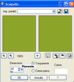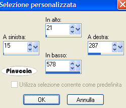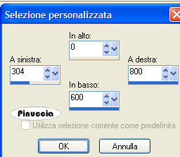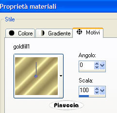 qui puoi trovare qualche risposta ai tuoi dubbi. Se l'argomento che ti interessa non è presente, ti prego di segnalarmelo. Questo tutorial è stato scritto e tradotto con PSP 9. Questo tutorial è stato scritto e tratto con PSP 9. Occorrente: Materiale qui Filtro Flaming Pear - Transline qui 1. Apri una nuova immagine trasparente 800 x 600 pixels. 2. Imposta il colore di primo piano con #8ca42a e riempi l'immagine con questo colore.3. Effetti>Plugins>Flaming Pear -Transline. 4. Livelli>Unisci>Unisci tutto (appiattisci). 5. Livelli>Nuovo livello raster. 6. Attiva lo strumento Selezione ![]() selezione personalizzata con i seguenti settaggi:![]() ![]() 7. Riempi la selezione con il colore di primo piano.8. Effetti>Effetti 3D>Scalpello: ![]() 9. Regola>Aggiungi/rimuovi disturbo>Aggiungi disturbo: ![]() 10. Effetti>Effetti 3D>Sfalsa ombra, con i seguenti settaggi, colore nero. ![]() 11. Selezione>Nessuna selezione. 12. Livelli>Nuovo livello raster. 13. Attiva lo strumento Selezione personalizzata ![]() con i seguenti settaggi: ![]() 14. Riempi la selezione con un motivo oro.a questo punto del tutorial hai impostato il colore di primo piano con il colore #8ca42a, che ti servirà ancora. Per questo ti consiglio di impostare il Motivo oro come colore di sfondo: ![]() in questo modo non sarai costretto a cambiare ogni volta il colore nella paletta dei materiali. Ricordati che per riempire con il colore di sfondo, devi cliccare con il tasto destro del mouse. 15. Selezione>Modifica>Contrai, di 3 pixels. 16. Premi sulla tastiera il tasto canc ![]() Mantieni seleizonato. 17. Riempi con il colore di primo piano.18. Selezione>modifica>Contrai, di 3 pixels. Premi sulla tastiera il tasto canc. 19. Riempi con il motivo oro.Selezione>Modifica>Contrai, di 3 pixels. Premi sulla tastiera il tasto canc. 20. Livelli>Nuovo livello raster. 21. Riempi con il colore di primo piano.22. Selezione>Nessuna selezione. 23. Abbassa l'opacità di questo livello al 60%. 24. Apri il mist krw-stonestairs e vai a Modifica>Copia. 25. Torna al tuo lavoro e vai a Modifica>Incolla>Incolla come nuovo livello. Spostalo nella metà di destra, come mostrato nell'esempio.Cambia la modalità di miscelatura di questo livello in Luminanza (esistente), e abbassa l'opacità al 40%. ![]() 26. Apri il mist krw-pensiveCouple e vai a Modifica>Copia. 27. Torna al tuo lavoro e vai a Modifica>Incolla>Incolla come nuovo livello. Spostalo nella metà di destra, contro il bordo.28. Cambia la modalità di miscelatura di questo livello in Luminanza (esistente). ![]() 29. Apri il mist krw-waterdropCouple e vai a Modifica>Copia. 30. Torna al tuo lavoro e vai a Modifica>Incolla>Incolla come nuovo livello. Spostalo nella metà sinistra, in basso.![]() 31. Cambia la modalità di miscelatura di questo livello in Luminanza (esistente). 32. Apri il mist krw-fullmoon50 e vai a Modifica>Copia. 33. Torna al tuo lavoro e vai a Modifica>Incolla>Incolla come nuovo livello. Spostalo sul lato destro,nell'angolo in alto a sinistra. 34. Cambia la modalità di miscelatura di questo livello in Luminanza (esistente), e abbassa l'opacità al 60%. 35. Apri il tube krw-moment. 36. Attiva il livello Text 1 e vai a Modifica>Copia. 37. Torna al tuo lavoro e vai a Modifica>Incolla>incolla come nuovo livello. Posiziona il testo nella parte sinistra, come nel mio esempio.38. Torna al tube krw-moment e attiva il livello Text 2. Modifica>Copia. 39. Torna al tuo lavoro e vai a Modifica>Incolla>Incolla come nuovo livello. Posiziona il testo nella parte sinistra, come nel mio esempio.40. Cambia la modalità di miscelatura di questo livello in Filtra. 41. Immagine>Aggiungi bordatura, 2 pixels, simmetriche, con il colore #476200. 42. Aggiungi la tua firma, se vuoi. Livelli>Unisci>Unisci tutto (appiattisci). 43. Immagine>Ridimensiona, a 600 pixels di altezza, e salva in formato jpg. ![]() Se hai problemi o dubbi, o trovi un link non funzionante, o anche soltanto per un saluto, scrivimi. 30 Maggio 2007 |