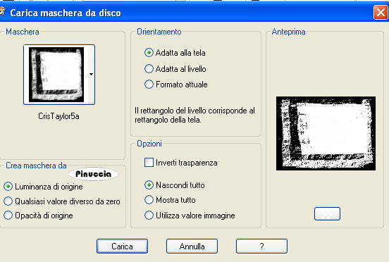 qui puoi trovare qualche risposta ai tuoi dubbi. Se l'argomento che ti interessa non è presente, ti prego di segnalarmelo. Questo tutorial è stato creato con PSP 9. Materiale qui 1. Metti il file Circlelayer.psp nella tua cartella dei Motivi (Pattern). 2. Apri una nuova immagine trasparente 640 x 480 pixels 3. Imposta il colore di primo piano su #455564. 4. Riempi l'immagine con il colore di primo piano.5. Livelli>Nuovo livello raster. 6. Selezione>Seleziona tutto. 7. Apri Landscape 1 e vai a Modifica>Copia. Torna alla tua immagine e vai a Modifica>Incolla>Incolla nella selezione. 8. selezione>Nessuna selezione. 9. Livelli>Carica/Salva maschera>Carica maschera da disco e carica la maschera CrisTaylor5a: ![]() 10. Livelli>Unisci>Unisci gruppo. 11. Effetti>Effetti 3D>Sfalsa ombra, con i seguenti settaggi, colore nero: ![]() 12.Apri YvonnePower_Princesswalk.ljr.pspimage. 13. Posizionati sul livello dell'ombra ![]() e vai a Modifica>Copia. Torna al tuo lavoro e vai a Modifica>Incolla>Incolla come nuovo livello. 14. Spostalo a destra della maschera.15. Nella paletta dei livelli cambia la modalità di miscelatura in Luminanza (esistente) e abbassa l'opacità al 70%. 16. Ritorna al file YvonnePower, posizionati sul livello del tube e vai a Modifica>Copia. Sul tuo lavoro vai a Modifica>Incolla>Incolla come nuovo livello. 17. Spostalo sopra l'ombra:![]() 18. Nella paletta dei livelli cambia la modalità di miscelatura in Luminanza (esistente) e abbassa l'opacità al 35%. 19. Livelli>Unisci>Unisci tutto (appiattisci). 20. Immagine>Aggiungi bordatura, 2 pixels, simmetriche, con il colore nero. 21. Immagine>Aggiungi bordatura, 2 pixels, simmetriche, con il colore di primo piano. 22. Immagine>Aggiungi bordatura, 2 pixels, simmetriche, con il colore nero. 23. Immagine>Aggiungi bordatura, 25 pixels, simmetriche, con il colore bianco 24. Attiva lo strumento la Bacchetta magica ![]() Passa il colore di primo piano a Motivi e cerca il Motivo Circlelayer. ![]() 25. Riempi il bordo con il Motivo.26. Livelli>Nuovo livello raster. 27. Passa nuovamente il colore di primo piano a colore #455564 e riempi il nuovo livello con questo colore.28. Nella paletta dei livelli cambia la modalità di miscelatura in Colore. 29. Selezione>Nessuna selezione. 30. Livelli>Unisci>Unisci tutto (appiattisci). 31. Immagine>Aggiungi bordatura, 2 pixels, simmetriche, con il colore nero. 32. Apri il Misted_themaiden-foxleap.psp. 33. Immagine>Rifletti. 34. Attiva lo strumento Pennello trasforma in destinazione ![]() e colora (cliccando e passando con il mouse sopra l'immagine) con il colore di primo piano (#455564). 35. Modifica>Copia. Torna al tuo lavoro e vai a Modifica>Incolla>Incolla come nuovo livello e posizionalo a sinistra.![]() 36. Con lo strumento Selezione , impostato su rettangolo,seleziona ogni traccia sul bordo. ![]() e cancella premendo sulla tastiera il tasto CANC. 37. Effetti>Effetti 3d>Sfalsa ombra, con i seguenti settaggi, colore nero: ![]() 38. Apri Kirstendiv.image. 39. Colorizzala come al passo 35. 40. Modifica>Copia. Torna al tuo lavoro e vai a Modifica>Incolla>Incolla come nuovo livello. 41. Spostalo sopra il bordo nero interno da 2 pixels.42. Effetti>Effetti 3d>Sfalsa ombra, con i settaggi precedenti. 43. Seleziona lo strumento Testo , seleziona il font Inspiration ROB.ttf,vettore, dimensione 48, colore di sfondo #455564. 44. Posiziona il testo in fondo all'immagine. Livelli>Converti in livello raster. 45. Effetti>Effetti 3d>Sfalsa ombra, con i seguenti settaggi, colore nero: ![]() Ripeti l'Effetto Sfalsa ombra. 46. Livelli>Duplica. 47. Aggiungi la tua firma e salva in formato jpg. ![]()