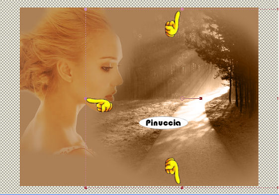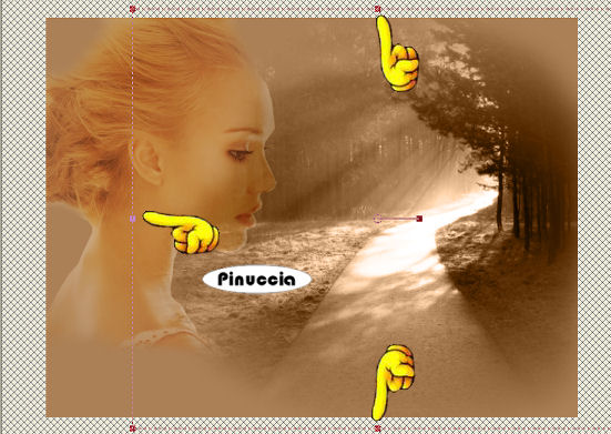 qui puoi trovare qualche risposta ai tuoi dubbi. Se l'argomento che ti interessa non è presente, ti prego di segnalarmelo. Questo tutorial è stato scritto e tradotto con PSP 9. Occorrente: Materiale qui Filtri: Xero Eye Candy Nature qui Mura's Meister - Copies qui Adjust Variation qui Apri il font e minimizzalo nella tua area di lavoro. Lo troverai nella lista dei font disponibili, quando attiverai lo strumento Testo. 1. Imposta il colore di primo piano con #ac8056 e il colore di sfondo con #723e26. 2. Apri una nuova immagine trasparente 640x480 pixels. 3. Riempi l'immagine trasparente con il colore di primo piano.4. Apri il mist krw-landscape5 e vai a Modifica>Copia. 5. Torna al tuo lavoro e vai a Modifica>Incolla>Incolla come nuovo livello. 6. Spostalo contro il bordo destro.7. Cambia la modalità di miscelatura di questo livello in Luminanza (Esistente). 8. Apri il mist krw-female115 e vai a Modifica>Copia. 9. Torna al tuo lavoro e vai a Modifica>Incolla>Incolla come nuovo livello. 10. Spostalo nell'angolo in alto a sinistra.11. Attiva lo strumento Gomma , rotondo, dimensione 90, durezza 43, passo 32.12. Sfuma il bordo inferiore del mist della donna e intorno ai capelli. 13. Cancella le tracce chiare vicino ai capelli e alla fronte. Non cancellare troppo. Vedi sotto l'immagine di partenza e quello che dovresti ottenere: ![]() 14. Cambia la modalità di miscelatura di questo livello in Luce diffusa. 15. Livelli>Duplica. 16. Abbassa l'opacità del livello duplicato al 40%. 17. Nella paletta dei livelli attiva il livello raster 2 (il paesaggio). ![]() 18. Attiva lo strumento Deformazione ![]() Se stai usando PSP X strumento Puntatore ![]() 19. Trascina i nodi come mostrato nelle schermate sotto: prima: ![]() dopo: ![]() 20. Attiva nuovamente lo strumento Gomma ![]() 21. Cancella attentamente la parte di paesaggio che si vede attraverso la pelle della donna. Fai attenzione a cancellare soltanto il paesaggio che si vede sul viso, non il resto. Se necessario, riduci la dimensione dello strumento, ma ricorda che più piccola è la dimensione della gomma, più pesante è la linea che questa lascia.