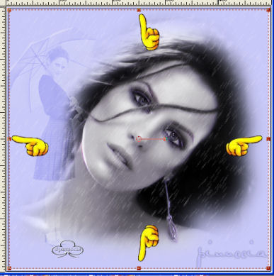 qui puoi trovare qualche risposta ai tuoi dubbi. Se l'argomento che ti interessa non è presente, ti prego di segnalarmelo. Questo tutorial è stato scritto in PSP 9. Occorrente: Filtro Bordermania qui Animation Shop qui 2 tubes a scelta. I tubes nell'esempio sono di Patry e Mtm Brigitte. Non conosco chi ha creato il template della pioggia fornito con il tutorial. Materiale disponibile qui 1. Apri una nuova immagine trasparente 500 x 500. 2. riempi l'immagine con un colore di tua scelta.3. Apri il tube principale (nel mio esempio il viso) e vai a Modifica>Copia. 4. Torna al tuo lavoro e vai a Modifica>Incolla>Incolla come nuovo livello. 5. Apri il secondo tube (nel mio esempio la ragazza con l'ombrello) e vai a Modifica>Copia. 6. Torna al tuo lavoro e vai a Modifica>Incolla>Incolla come nuovo livello. 7. Immagine>Ridimensiona, del 75%, tutti i livelli non selezionato. ![]() 8. Posizionalo sul lato sinistro dell'immagine.9. Nella paletta dei livelli cambia la modalità di miscelatura in Luce diffusa. ![]() 10. Aggiungi la tua firma. 11. Livelli>Nuovo livello raster. 12. Effetti>Plugins>Bordermania / Frame #2, con i seguenti settaggi: ![]() 13. Apri i tre file del template forniti con il tutorial. 14. Attiva il "Rain template 1" e vai a Modifica>Copia. Ritorna al tuo lavoro e vai a Modifica>Incolla>Incolla come nuovo livello. 15. Attiva lo strumento Deformazione ![]() e agendo sui nodi vettori, allargalo per adattarlo all'immagine. ![]() 16. Clicca sulla manina o qualsiasi altro strumento,