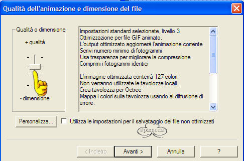 per disattivare la griglia della Deformazione.17. Ripeti i passi dal 14 al 16 con il "Rain template 2". 18. Ripeti i passi dal 14 al 16 con il "Rain template 3". La tua paletta dei livelli dovrebbe presentarsi così: ![]() 19. Chiudi i livelli raster 2 e 3, e seleziona il livello raster 1. ![]() 20. Modifica>Copia uniti. 21. Apri Animation Shop. 22. Clicca con il tasto destro sull'area di lavoro e clicca su Incolla come nuova animazione ![]() (apparirà il fotogramma uno). 23. Torna in PSP. Chiudi i livelli raster 1 e 3, e seleziona il livello raster 2. ![]() 24. Modifica>Copia unione. 25. In Animation Shop, clicca con il tasto destro del mouse su fotogramma 1 e scegli Incolla>Dopo il corrente fotogramma. ![]() 26. Ritorna in PSP, chiudi i livelli Raster 1 e 2, e seleziona il livello raster 3. ![]() 27. Modifica>Copia Unione. 28. Ripeti il passo 25. 29. File>Salva con nome - e salva il file in formato gif in una cartella a scelta. 30. Alla finestra Qualità dell'animazione, imposta come nella scheramta sotto: ![]()